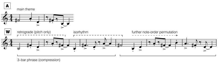 Example 20: Earthrise, retrograde, isorhythm and further note–order permutation