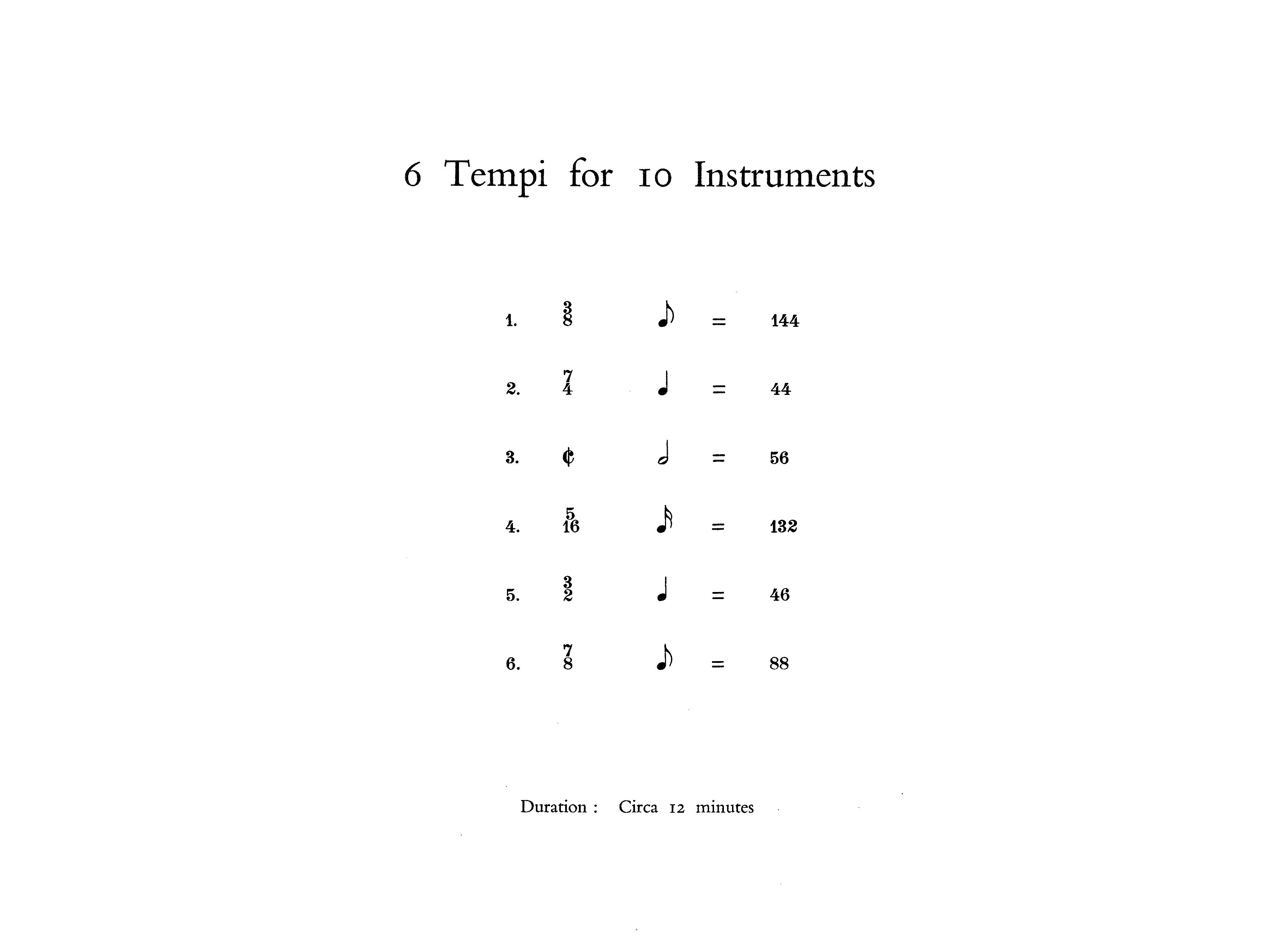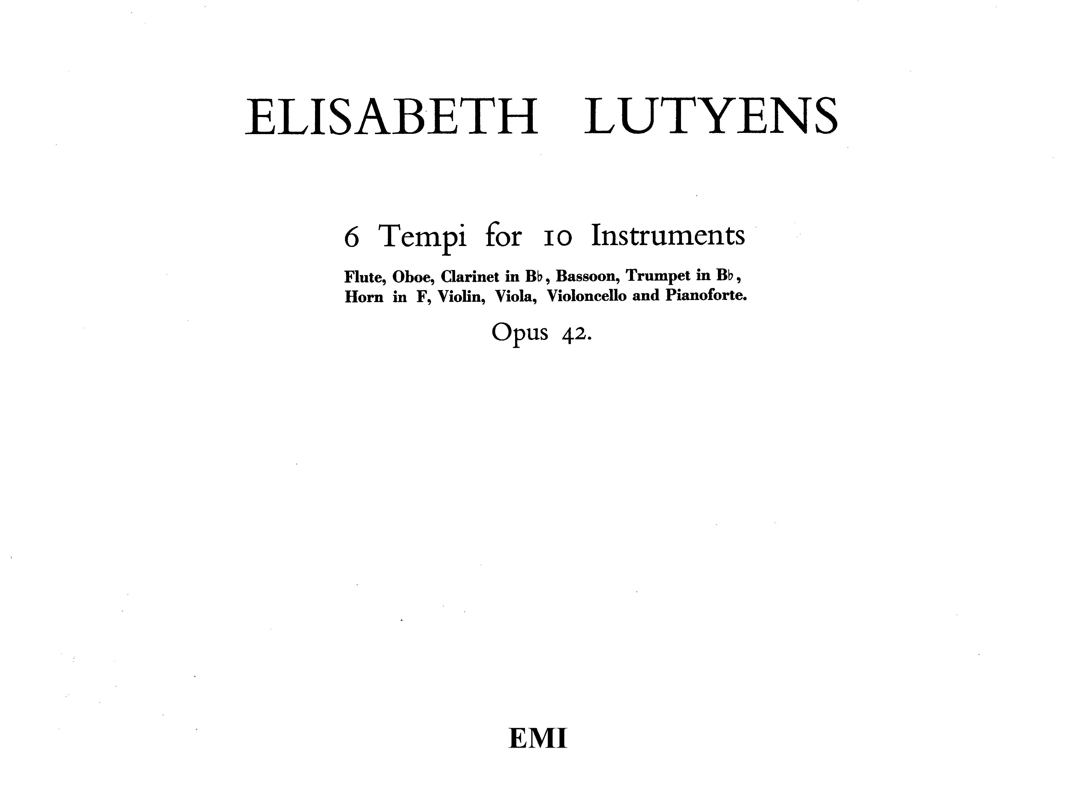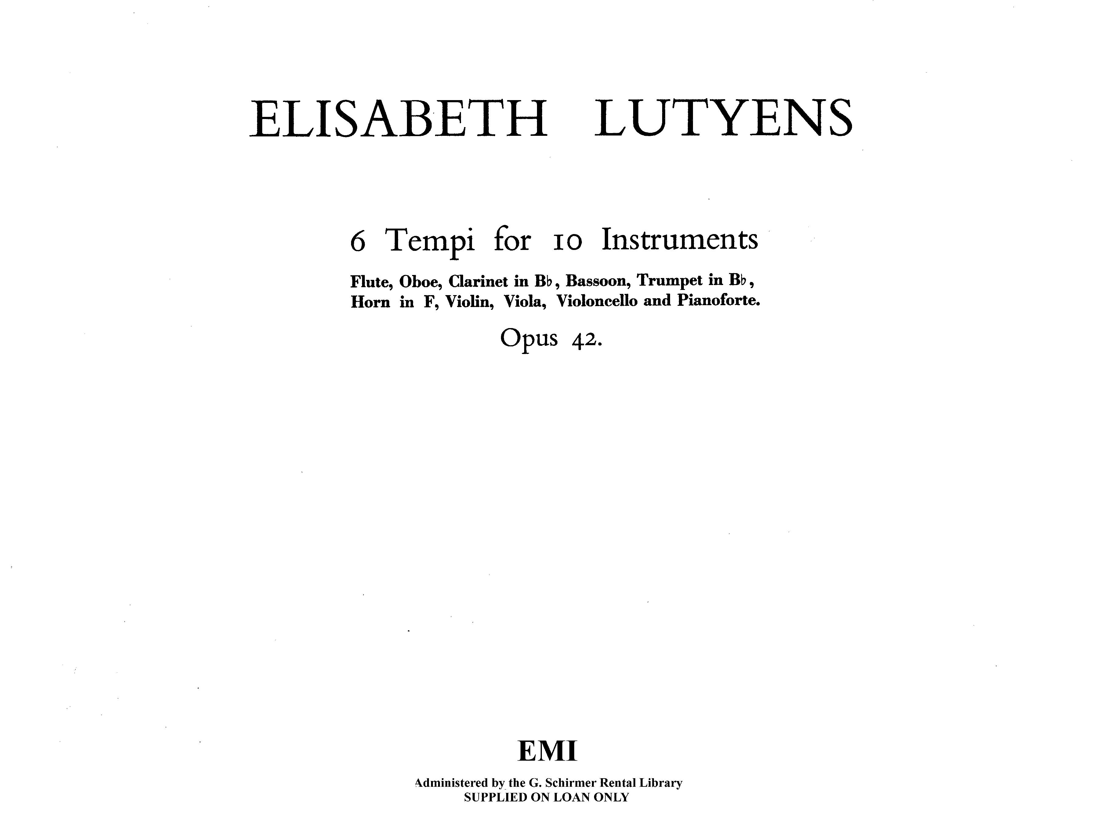 Lutyens SIX TEMPI FOR TEN INSTRUMENTS