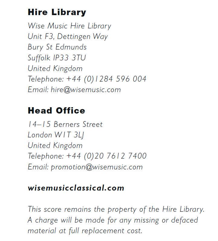 Fullscore&partsavailabletobuyorhirefrom WiseMusiconbehalfofMuteSongLtd.