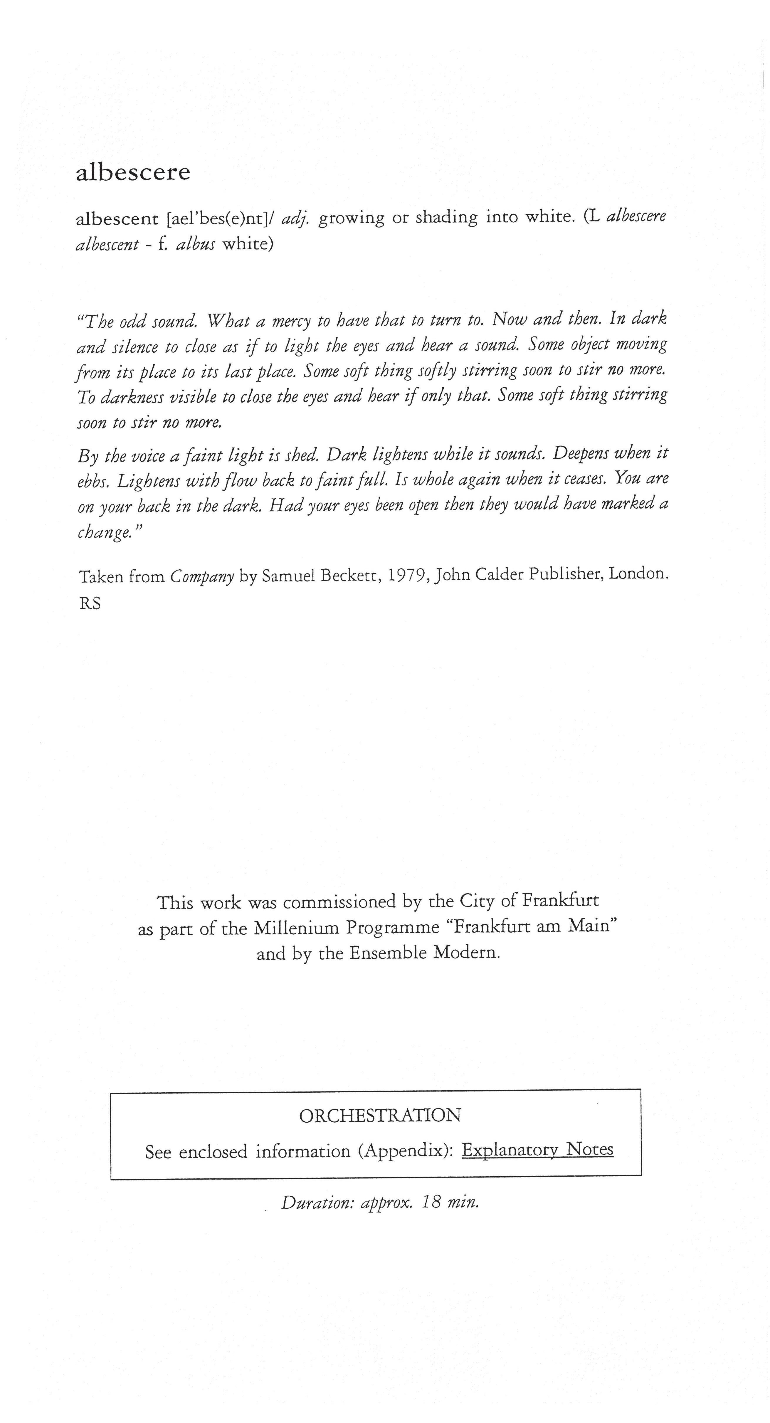 with thanks to members of Ensemble Modern, the Neue Vocalsolisten and Matthias Bauer