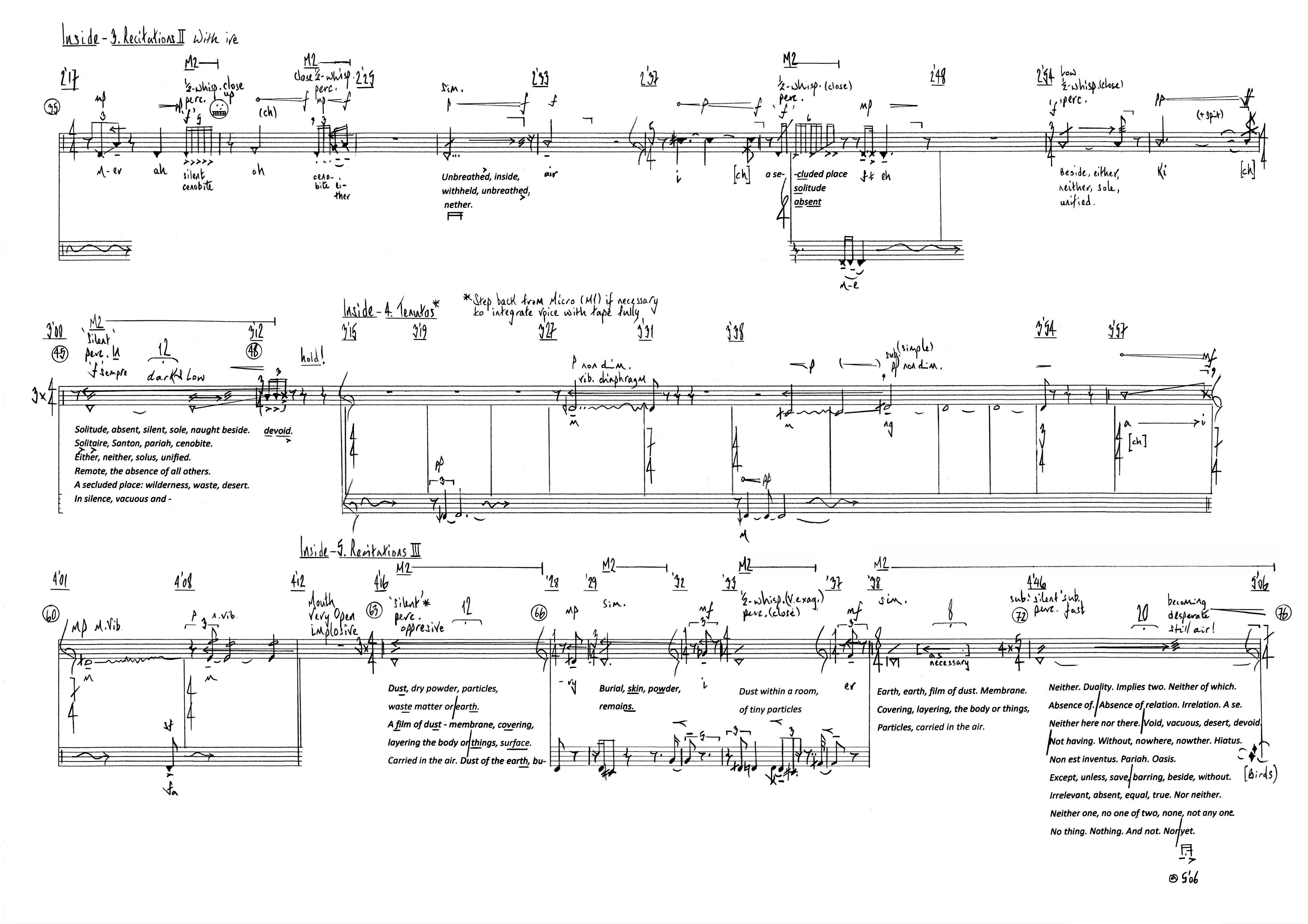 All rests and fermatas are given in seconds, even if the tempo is other than crotchet (1/4) = 60. Generally,adapt sounds, consonants/vowels and other timbral techniques where necessary to make your interpretation natural to your voice at all times. Duration: 20 minutes.