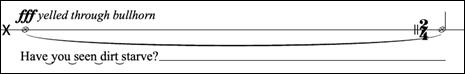 On your own dissonant pitch, follow the contour of the line in a low or high powerful register hold for the length of your breath ff