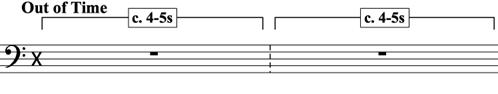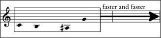 On your own dissonant pitch, starting in a low powerful register, repeat this figure higher and faster each time
