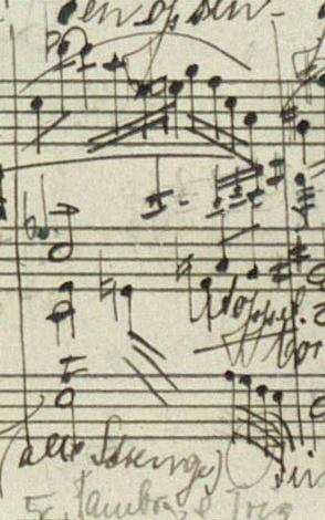 18 picc, tr, trb, tuba, timp fff ændret til fffz i overenst. med t. 8 (t. 18 er en gentagelse af t. 8)