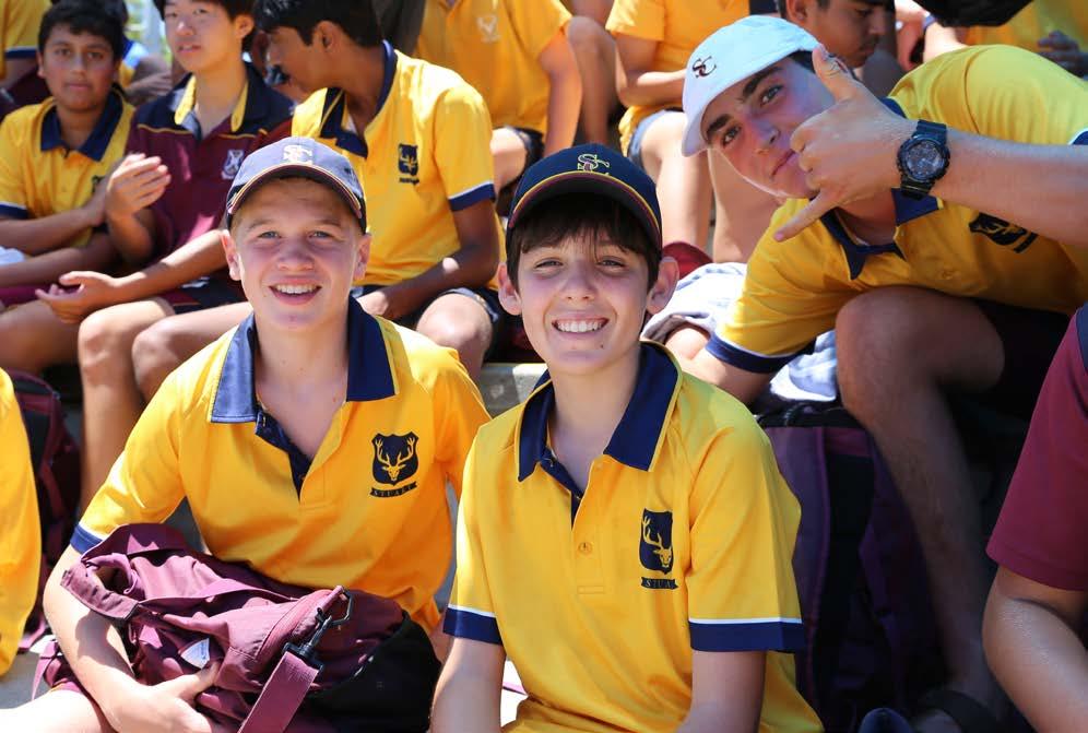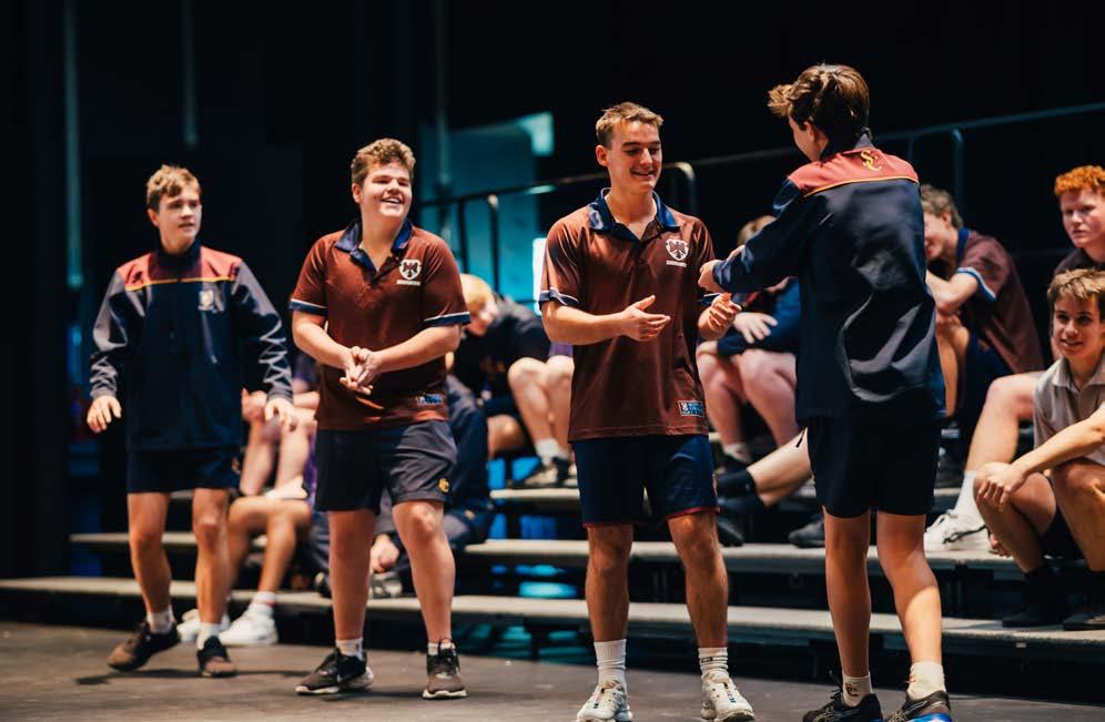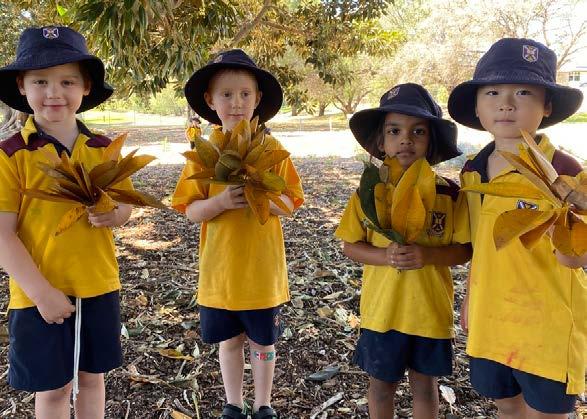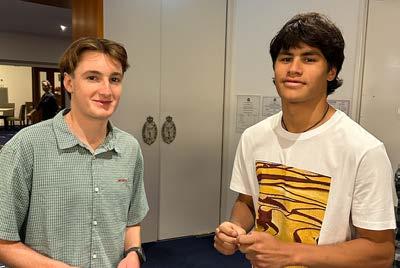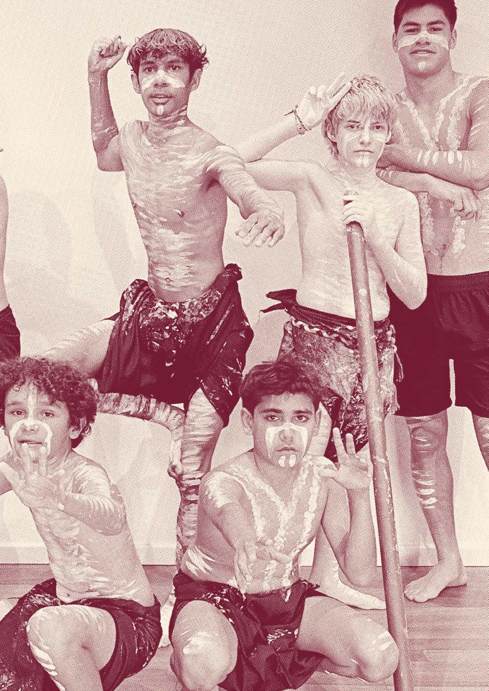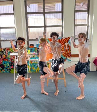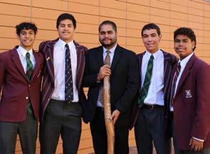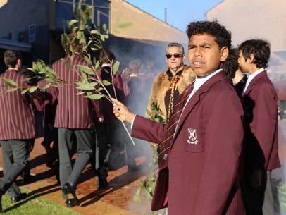Below: Indigenous dancers Harlem Bennell (Year 7) and Bennell Collard (Year 8) with boarders Ben Stack (Year 10) and Dallas Gray (Year 7)