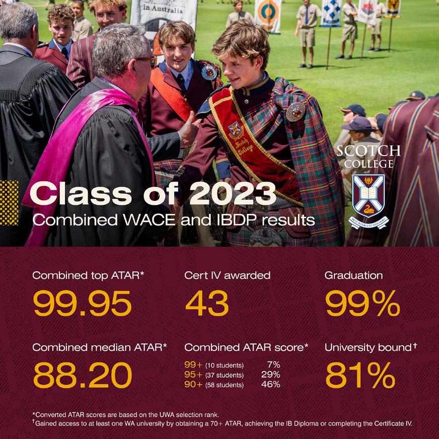 The tertiary education landscape is changing quickly. At Scotch College we use fine grained data analysis and our strong pastoral relationships to identify which pathway best suits each boy, and for each pathway we provide a rigorous curriculum and consistent feedback to allow our students to succeed to the best of their ability in the pathway of their choice. It is pleasing to record that overall 99% of our Year 12 cohort met the graduation requirements for their respective pathway, (in comparison with 70% global graduation rate for IBDP and 89% for the WACE programmes).