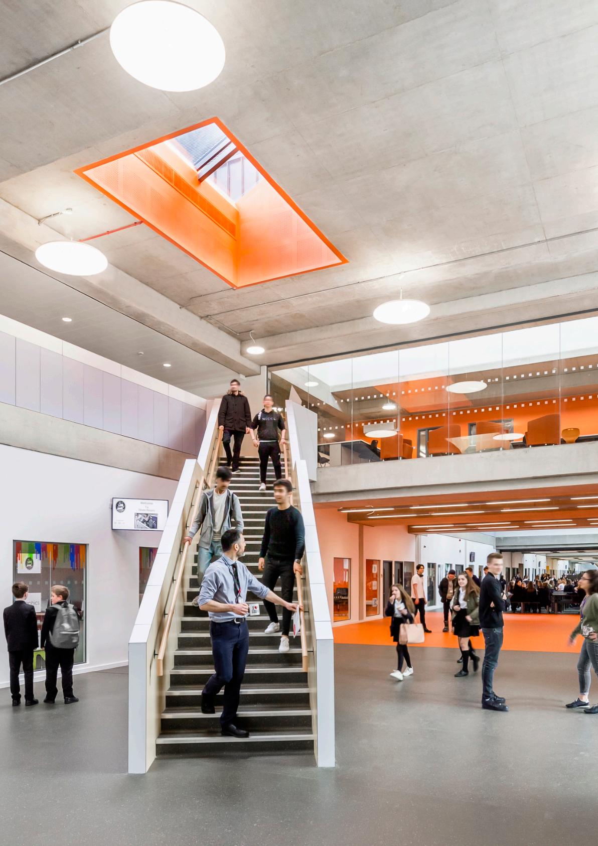 A post occupancy evaluation assessment of Three Rivers Academy revealed that students felt that the new building had a positive impact on their sense of safety and how easy they found it to navigate. Referring to large windows between classrooms and circulation routes and breakout spaces, they said that they particularly liked the fact that they knew where the teachers were and that the teachers could see them.