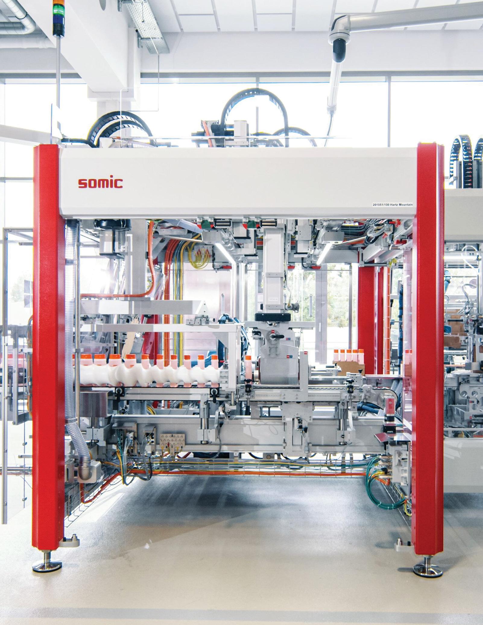 Incorporating advanced technologies and mechatronic functional blocks developed and constructed in our factory in upper Bavaria, each case-packing system configuration is designed to the customer's specific product and packaging requirements. Collaboration between all SOMIC teams and the customers’ teams is crucial. "Coordinating with our customers throughout the selection and development processes ensures their case-packed products arrive to retailers safely and in top condition," says SOMIC's Roswitha Aicher, Manager, Systems Engineering.