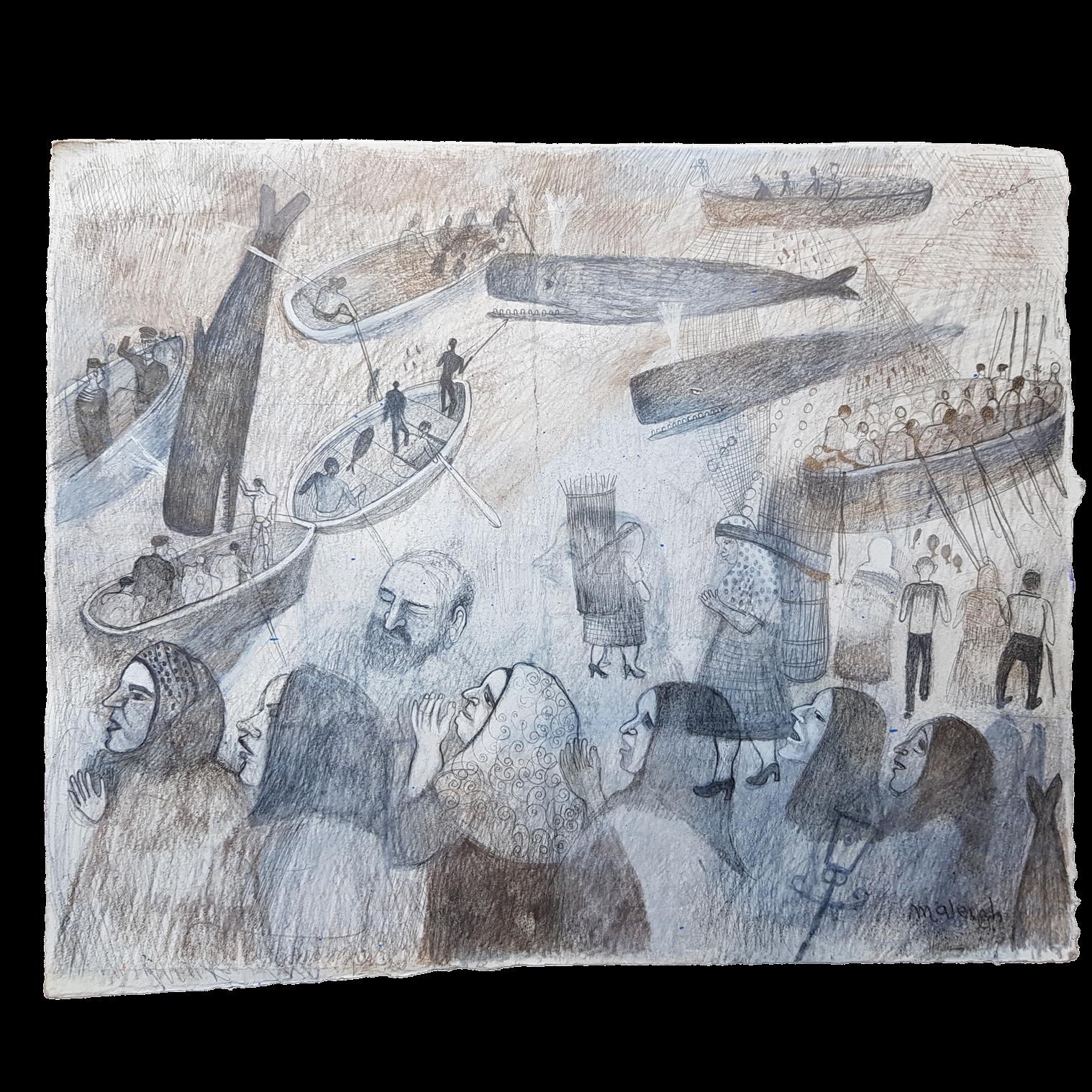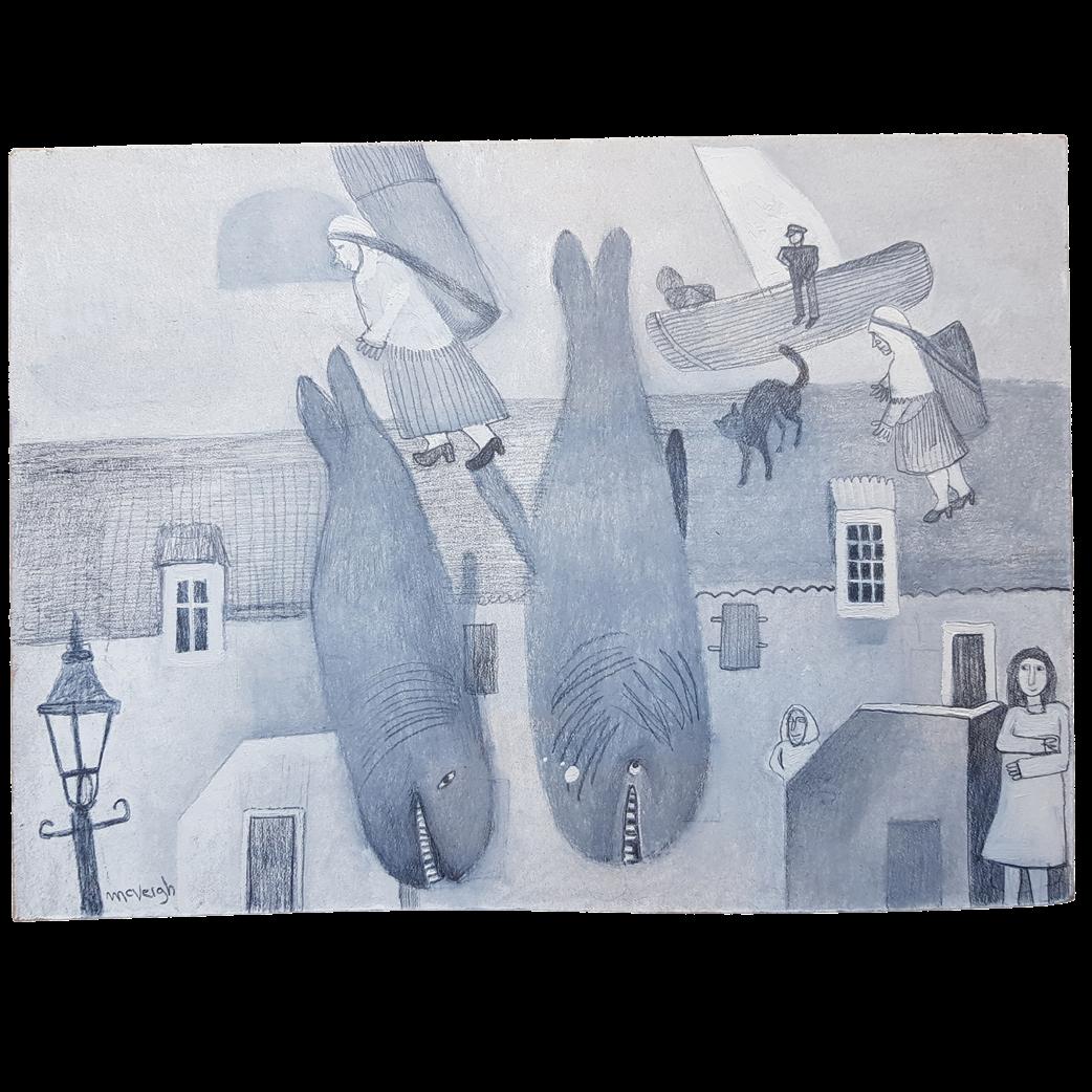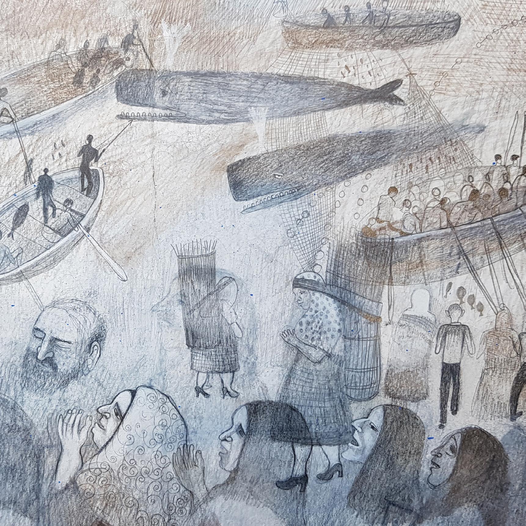 Two Whales I, pencil and pastel on paper, 23 x 31.5 cm