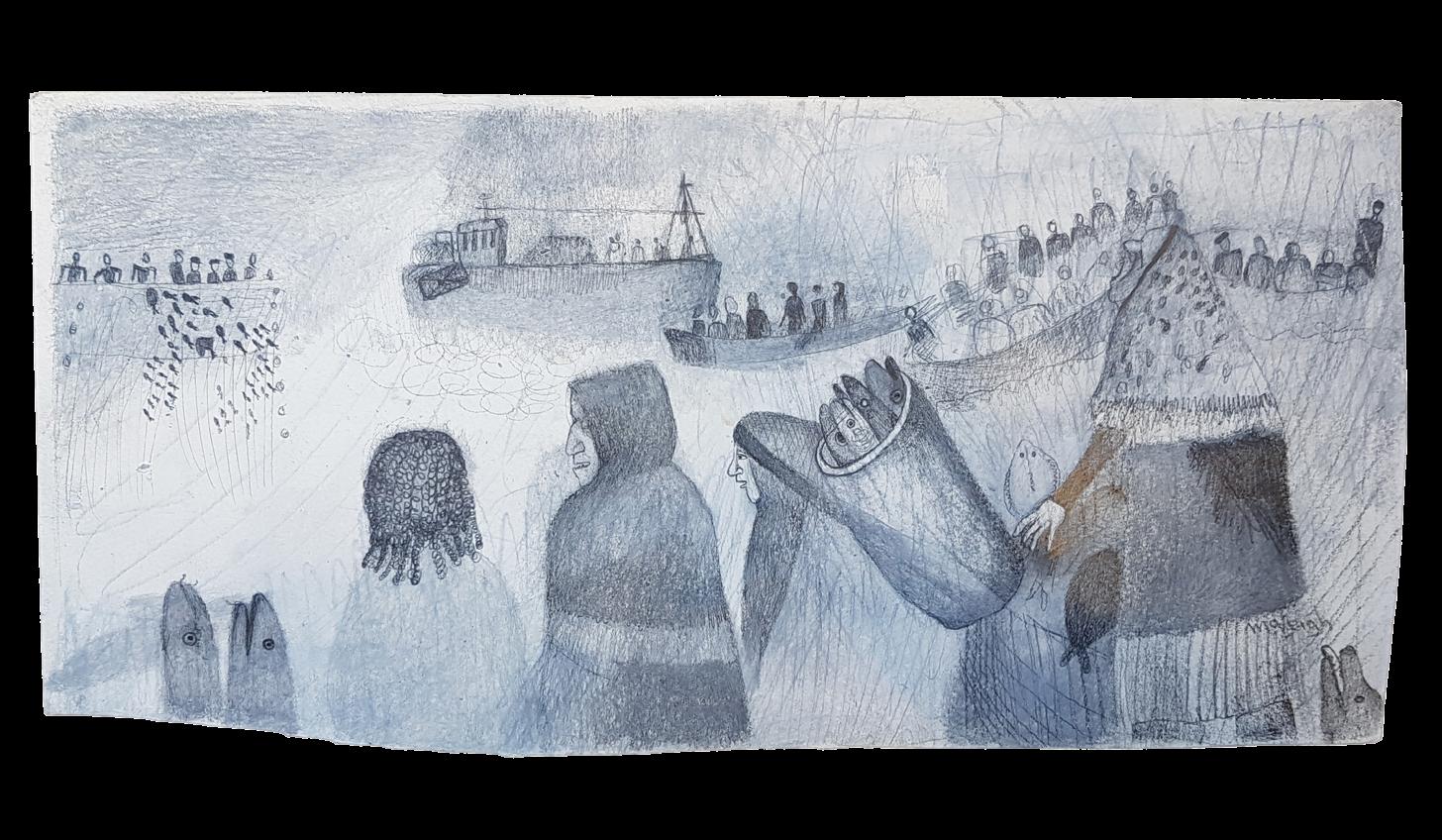 14 Fishing Fleet, pencil on paper, 25 x 34 cm