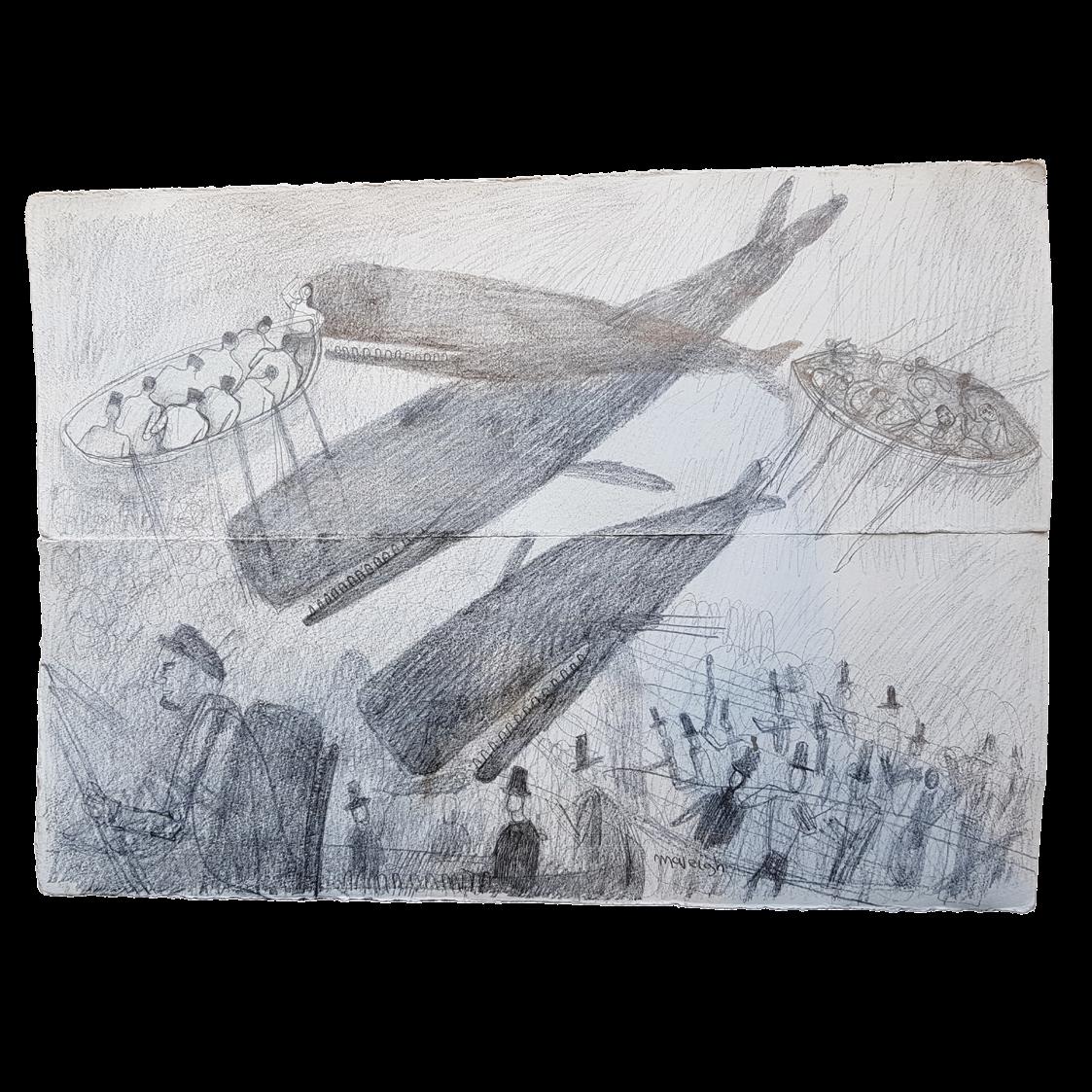 4 Two Whales II, pencil and pastel on board, 19 x 28 cm
