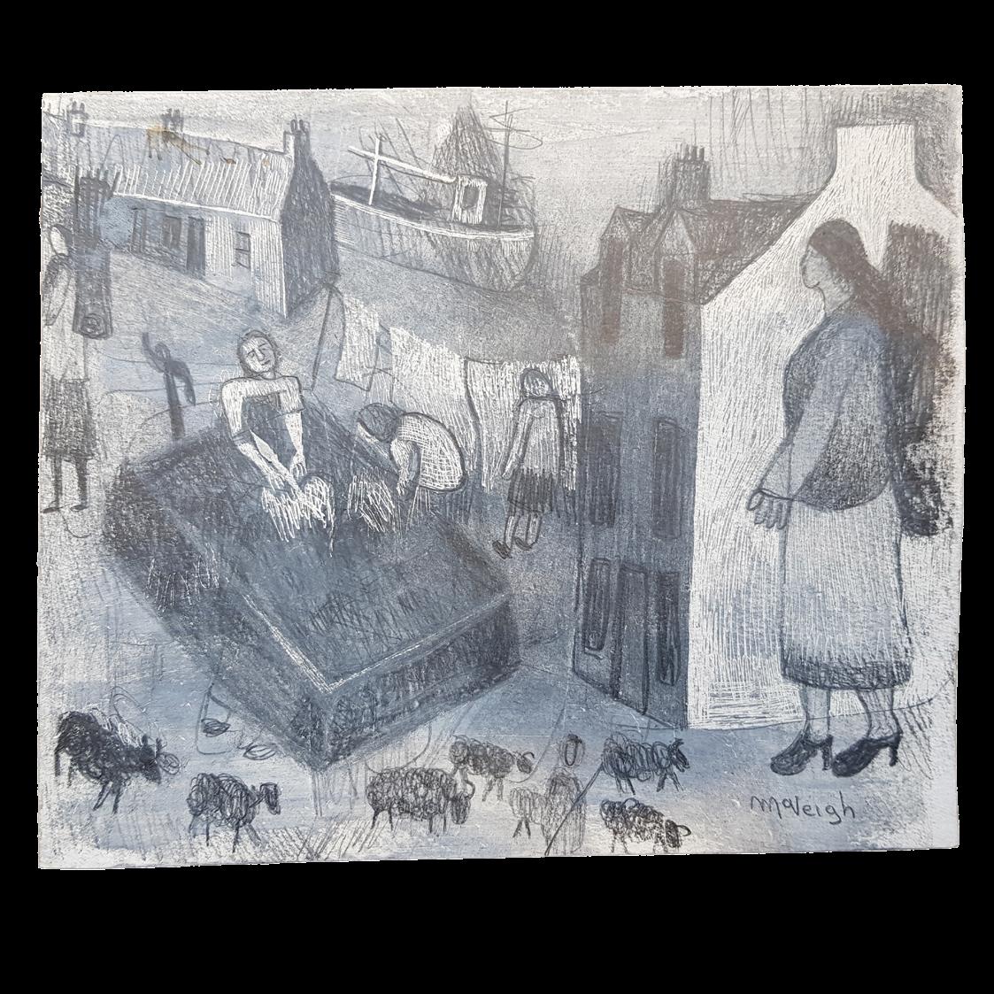 Newhaven Fisherwives, pencil and pastel on paper, 29 x 35 cm