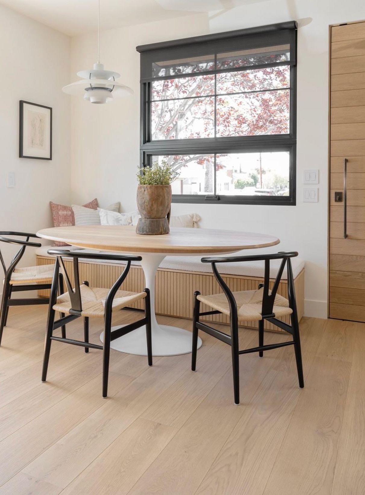 The subtle tones of our pale and white oak creates an atmosphere shaped by light and texture of wood. Our flooring creates a sense of calm inviting people to connect with the space