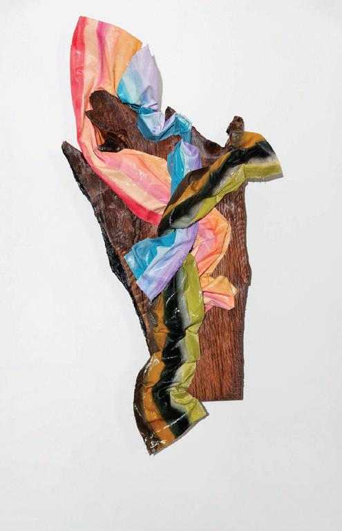 “Embrace” by Resident Artist Christi Meril, deconstructed canvas on old growth red wood, 63” x 32” x 9” | Photos by: Sara Kerens