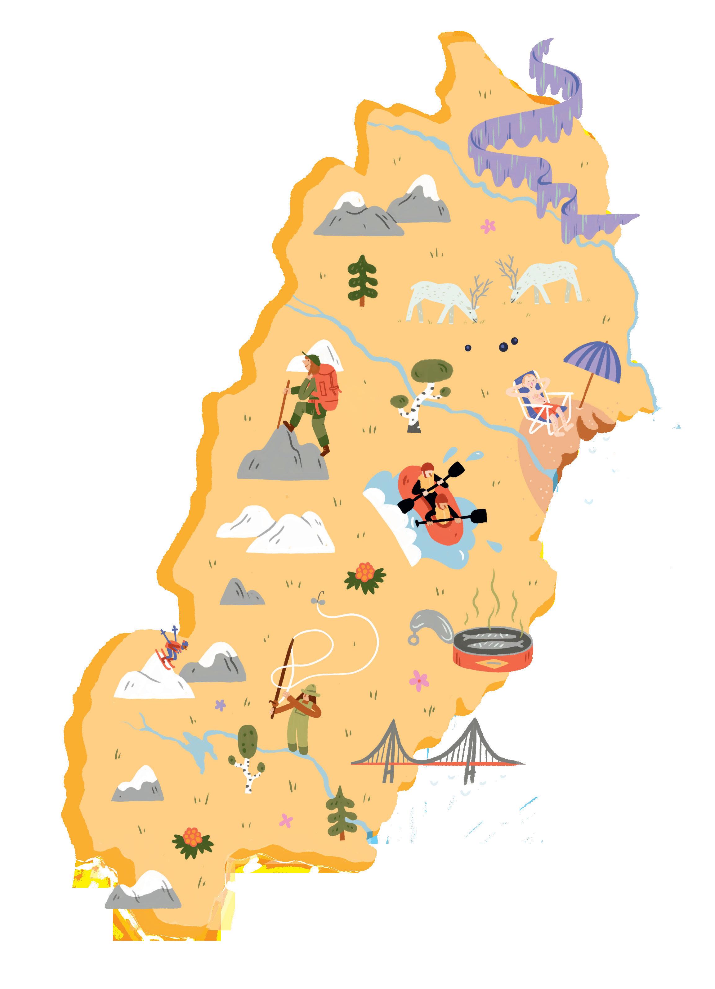 Expanses, mountains and powerful rivers shape a landscape where nature plays the leading role. Buildings are sparse, and the cities create exciting contrasts. The midnight sun and northern lights set the tone for the seasons.