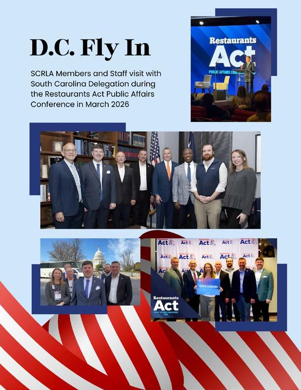 SCRLA was proud to join industry colleagues from across the nation to ensure that the voice of South Carolina’s hospitality industry was well represented on Capitol Hill. Throughout the conference, participants attended policy briefings, advocacy sessions, and industry discussions before meeting with members of Congress to share firsthand perspectives on the challenges and opportunities facing restaurant operators.