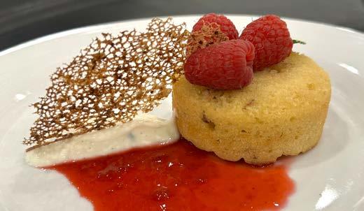 Daniel Morgan Technology Center ProStart Culinary Competition Dessert Creation Pineapple-Salted Plum Cake with Whipped Ricotta, Rasberry Coulis and Pecan Lace Tuile
