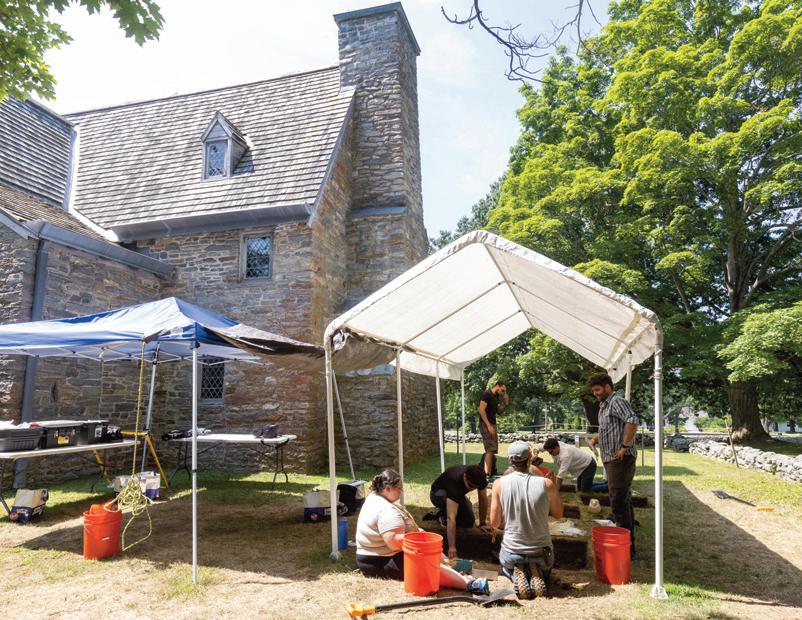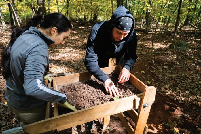 HATHAWAY STUDIES METHODS IN ARCHAEOLOGY WITH PROFESSOR MICHAEL ROGERS AT THE WEST ROCK FIELD SITE.