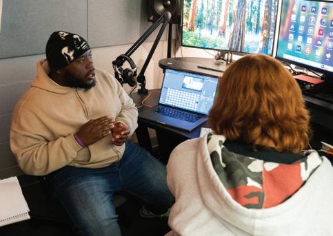 Students in the program gain hands-on experience in the university’s CMS Digital Production Facility — a state-of-the-art media production hub featuring a fully functional television broadcast studio, editing suites, a live-streaming podcast studio, and high-end field equipment.