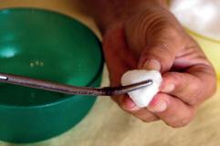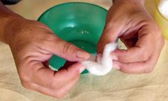 Durante il medesimo trattamento, per effettuare successive applicazioni, il cotone mantenutosi integro può essere riutilizzato dopo averlo rinvigorito con altro alcool.