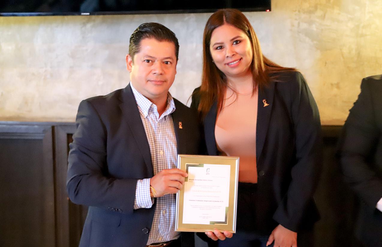 Durante el acto, Carlos Salas, Tania Farías y Carlos Lembo, Presidente, Secretaria y Teso‑ rero, respectivamente, tomaron protesta al nuevo integrante y colocaron el distintivo que lo acredita como nuevo Vocal.