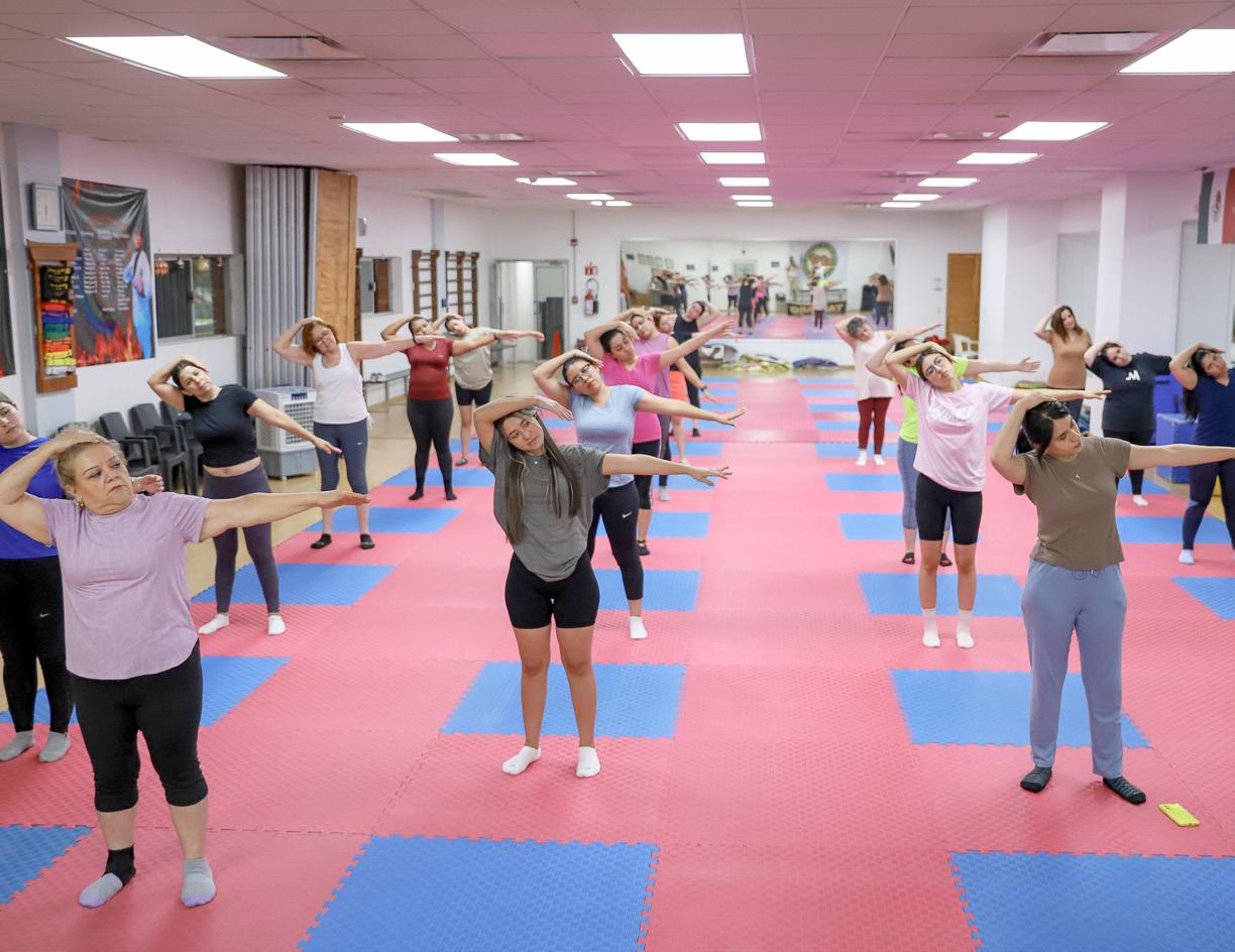 Las sesiones, impartidas por Odalis Sustaita, fusionan elementos dinámicos y de fortaleci‑ miento muscular con principios fundamenta‑ les de control mental, estiramientos, respira‑ ción y relajación.