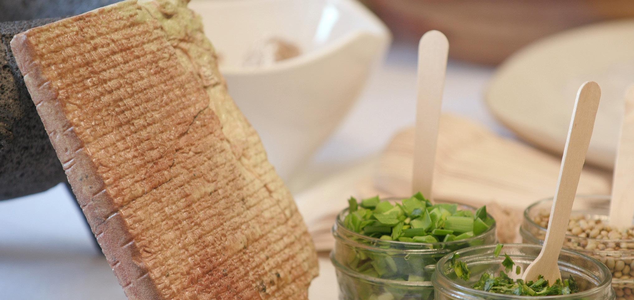 En 1990, el historiador francés Jean Botté‑ ro hizo un descubrimiento extraordinario en la Universidad de Yale: tres tablillas de arcilla que contienen 25 recetas culinarias, fechadas alrededor del 1750 a.C.