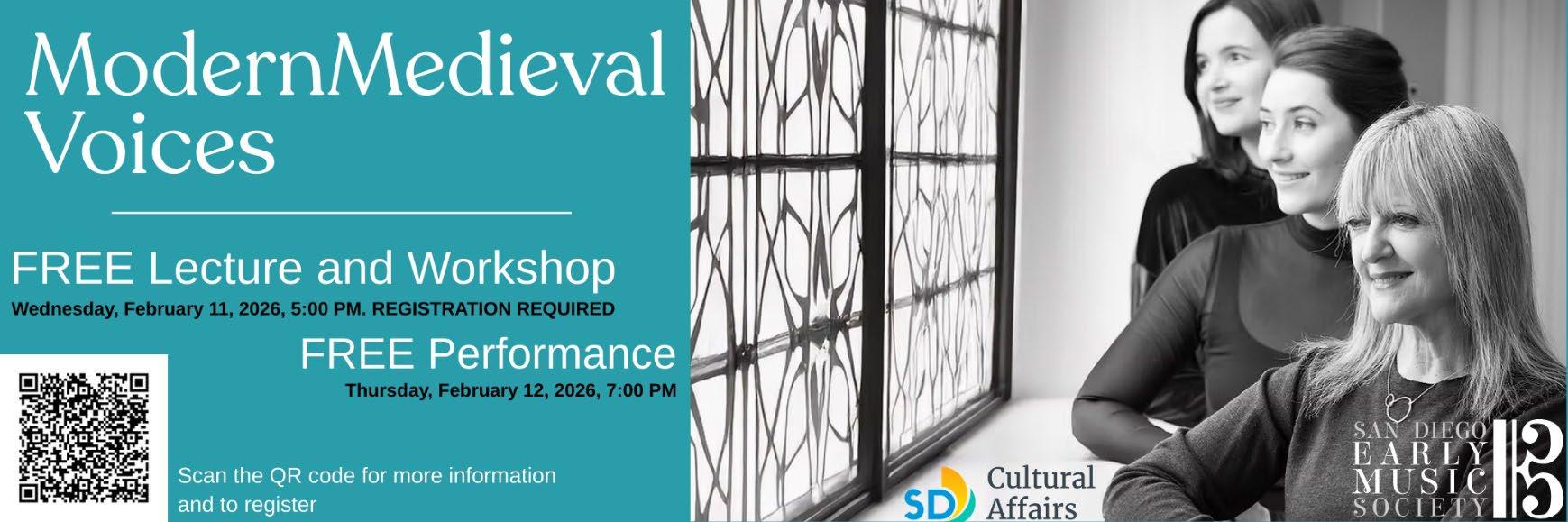 In addition, our Outreach Program seeks to share the beauties of medieval, Renaissance and Baroque music with San Diegans of all ages through free demonstrations, master classes and performances, often by local early music practitioners. To foster connection among lovers of music before 1750, each year we host an Early Music Sing-Along and an Early Music Showcase that attract large numbers of participants and audience members.
