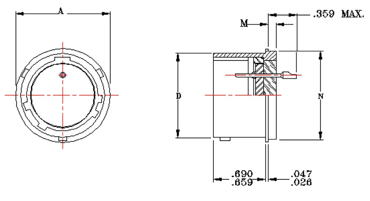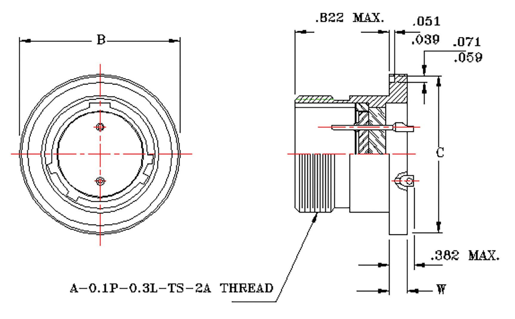 “A” Series receptacles meet the instrumentation voltage requirements of MIL-DTL-5015. Connector receptacles with higher voltage ratings are available upon request. Connectors are designed to meet salt spray, shock, and vibration requirements of MIL-DTL-5015
