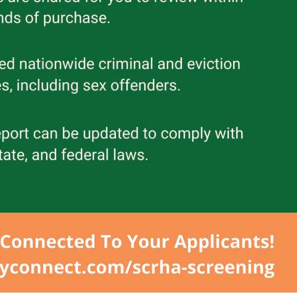 AsmembersoftheSouthernCaliforniaRentalHousing Association,wearepartnersincreatingathrivingcommunity byprovidingqualityrentalhousingforall.Wevalueour residents,ourfellowmembers,andourcommunityandare workingtosupportahealthyhousingecosystemthrough advocacy,education,andcollaboration.