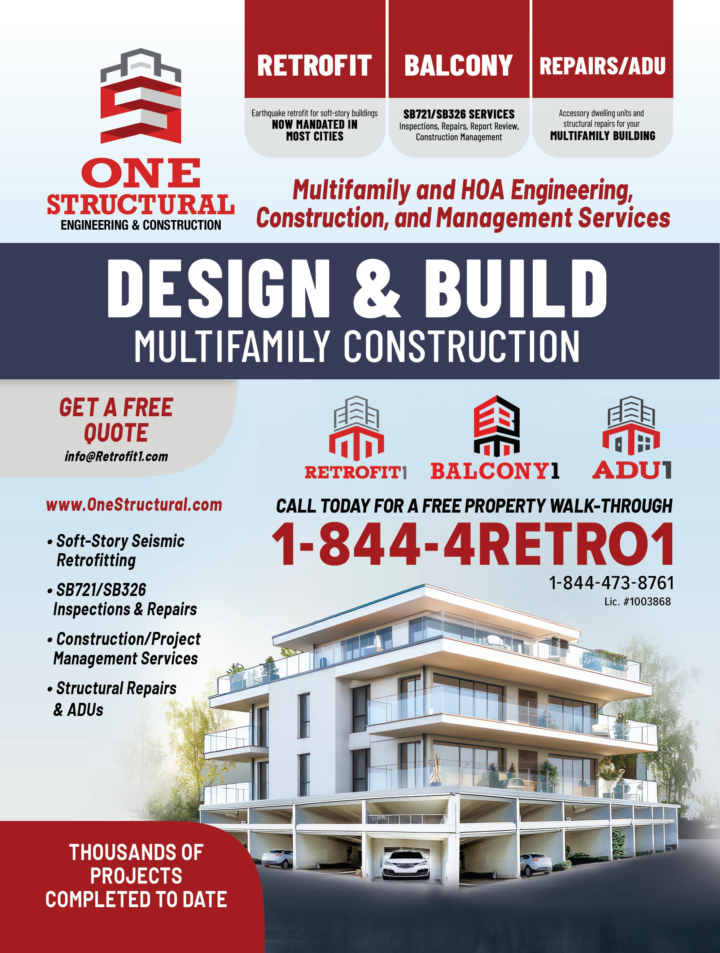 The Optimum Seismic team has been making California cities safer since 1984 by providing full-service earthquake engineering, steel fabrication and construction services for multifamily residential, commercial and industrial buildings With more than 4,000 earthquake retrofit and renovation projects completed, Optimum Seismic’s work includes softstory multifamily apartments, tilt-up, non-ductile concrete, steel moment frame and unreinforced masonry (URM) buildings To arrange a complimentary assessment of your building’s earthquake resilience, contact Optimum Seismic at (833) 978-7664 or visit optimumseismic .com .