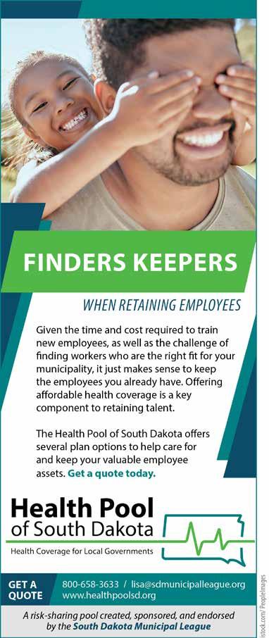 I hope members of the policy committees had productive discussions and that the policy review was especially helpful for any new members joining a committee for the first time. These policies provide the League with valuable direction when the legislative session begins. View each committee's recomendations on ( ► p.7) . Remember, it’s not too late to provide feedback. If you have comments on the SDML Statement of Policy, please submit them at www. sdmunicipalleague.org/About-StatementofPolicy.