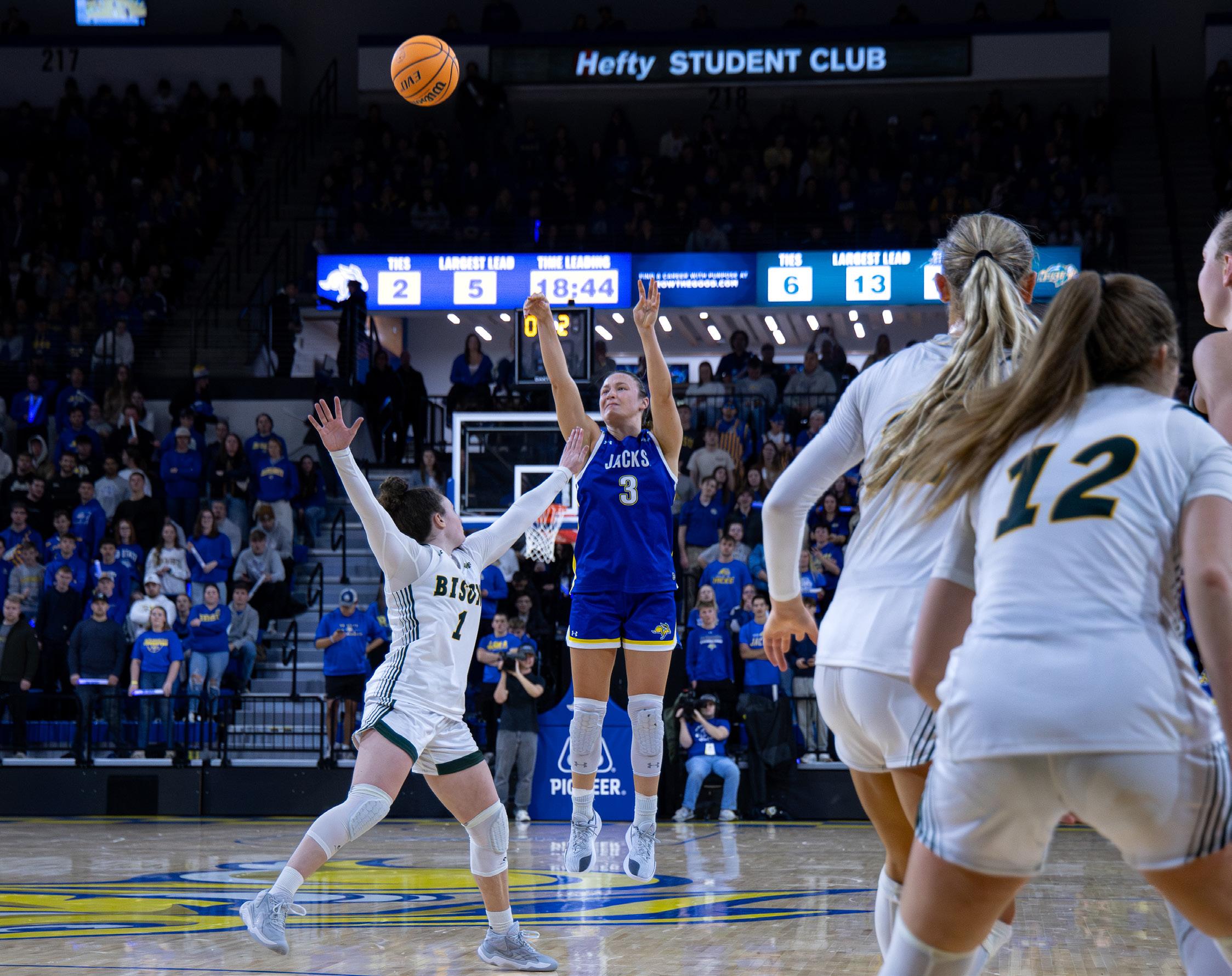 Sophomore guard Emilee Fox was the third and final Jackrabbit to crack double digits with 11 points on 3-3 shooting from deep.