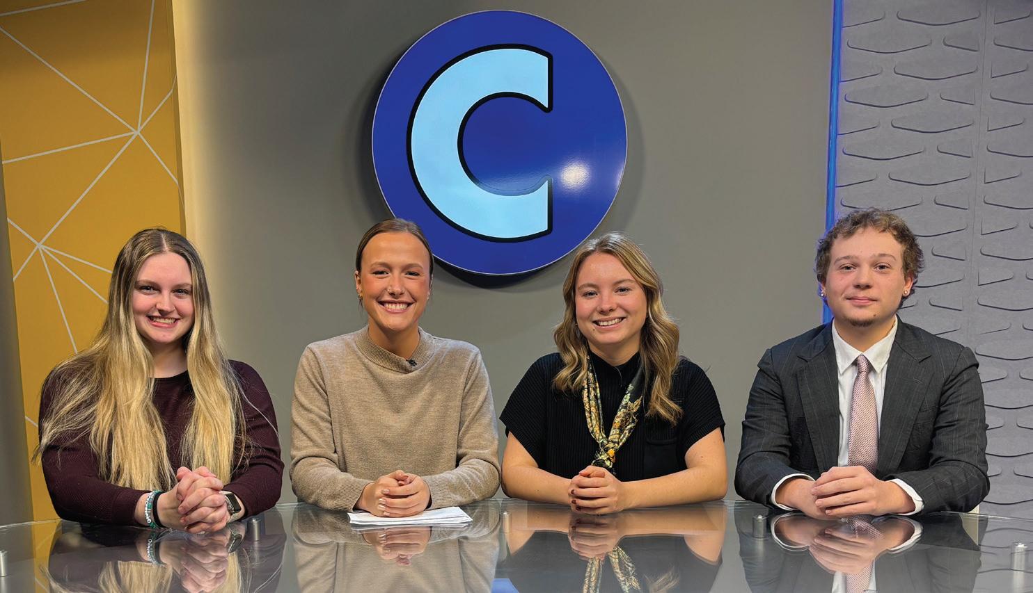 The CollegianReport anchors from left, Kennedy Foster, Annie Witt, Ella Stiefvater and Cordell Vitense, sit at the Collegian news desk. New episode’s are posted to the Collegian Media YouTube channel every Friday.