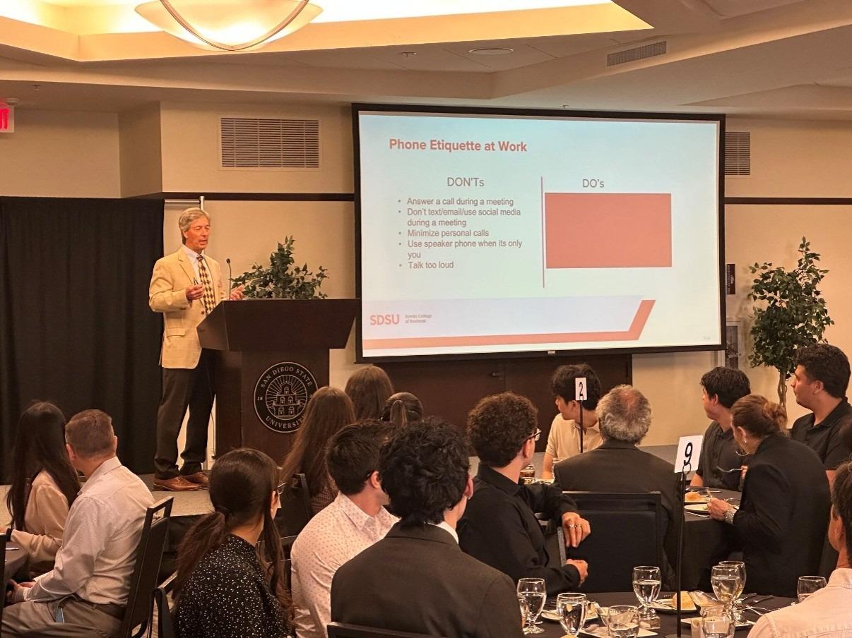 130 students attended the third annual Career Readiness and Etiquette Luncheon. Paul Sager moderated the event and delivered a tailored presentation that addressed key concerns and included soft skills training materials from top accounting frms and recruiters to directly address student needs.