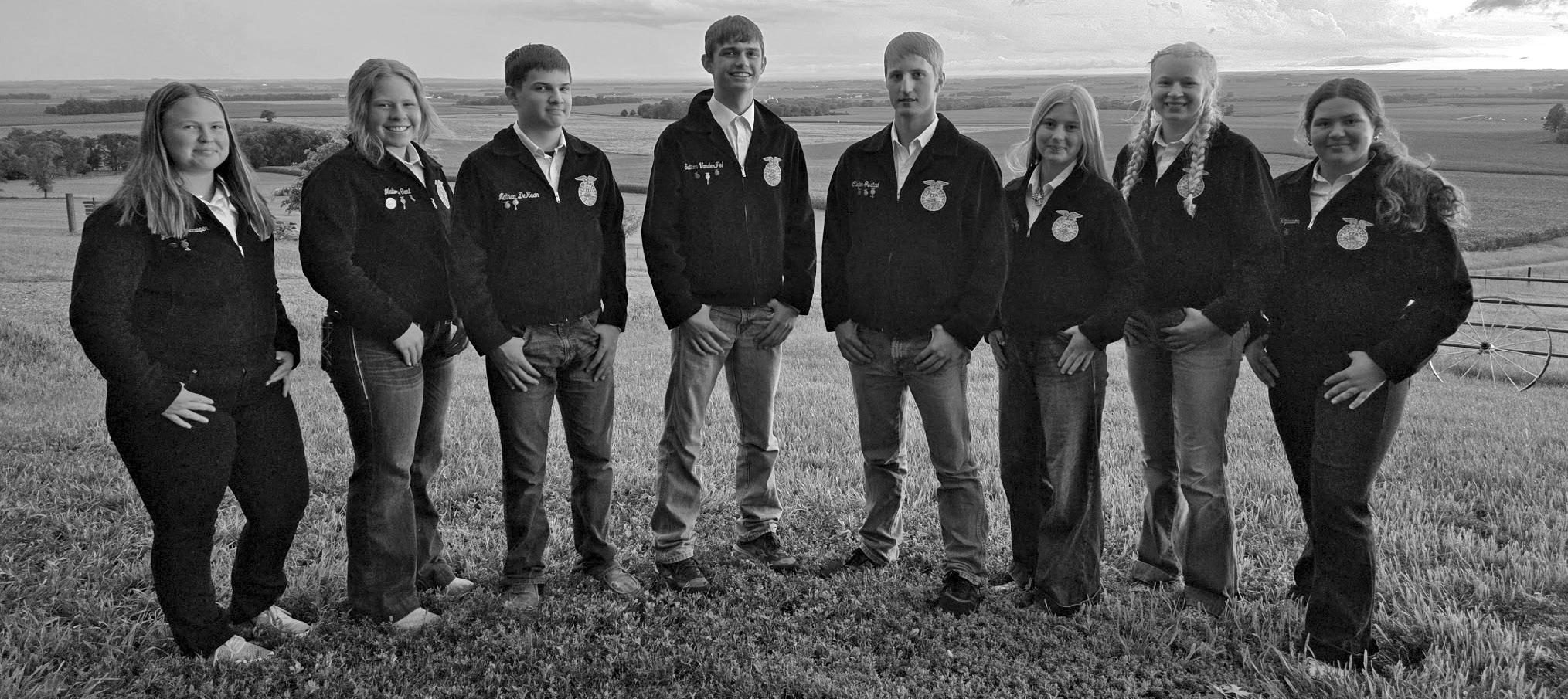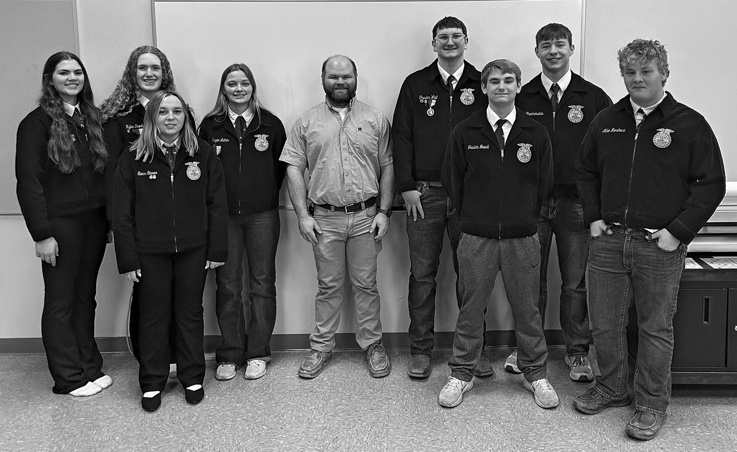 FFA Advisor Shane Gross (middle) with FFA members Jocelyn Wagner, Rylee Knock, Regan Lutter, Preston Wipf, Tristan Nowell, Aiden Frankenstein and Aiden Morehouse.
