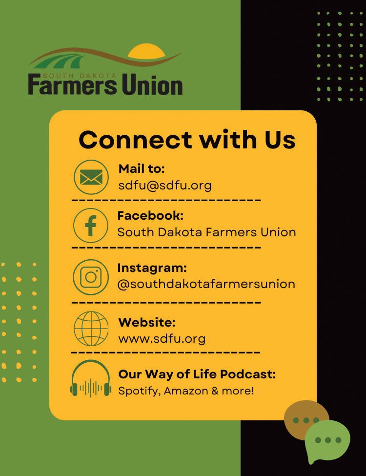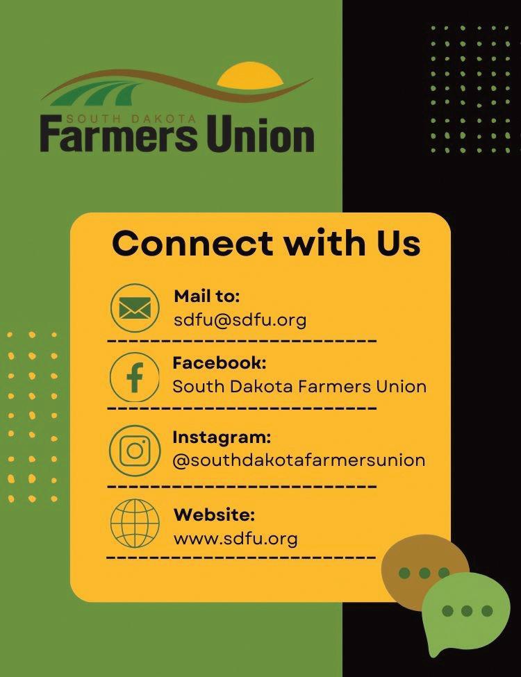 Show your Farmers Union spirit with a special Farmers Union sign. The cost per sign is $10 or free with a fiveyear or greater membership to Farmers Union. To get yours today, call 605-352-6761 or email sdfu@sdfu.org.