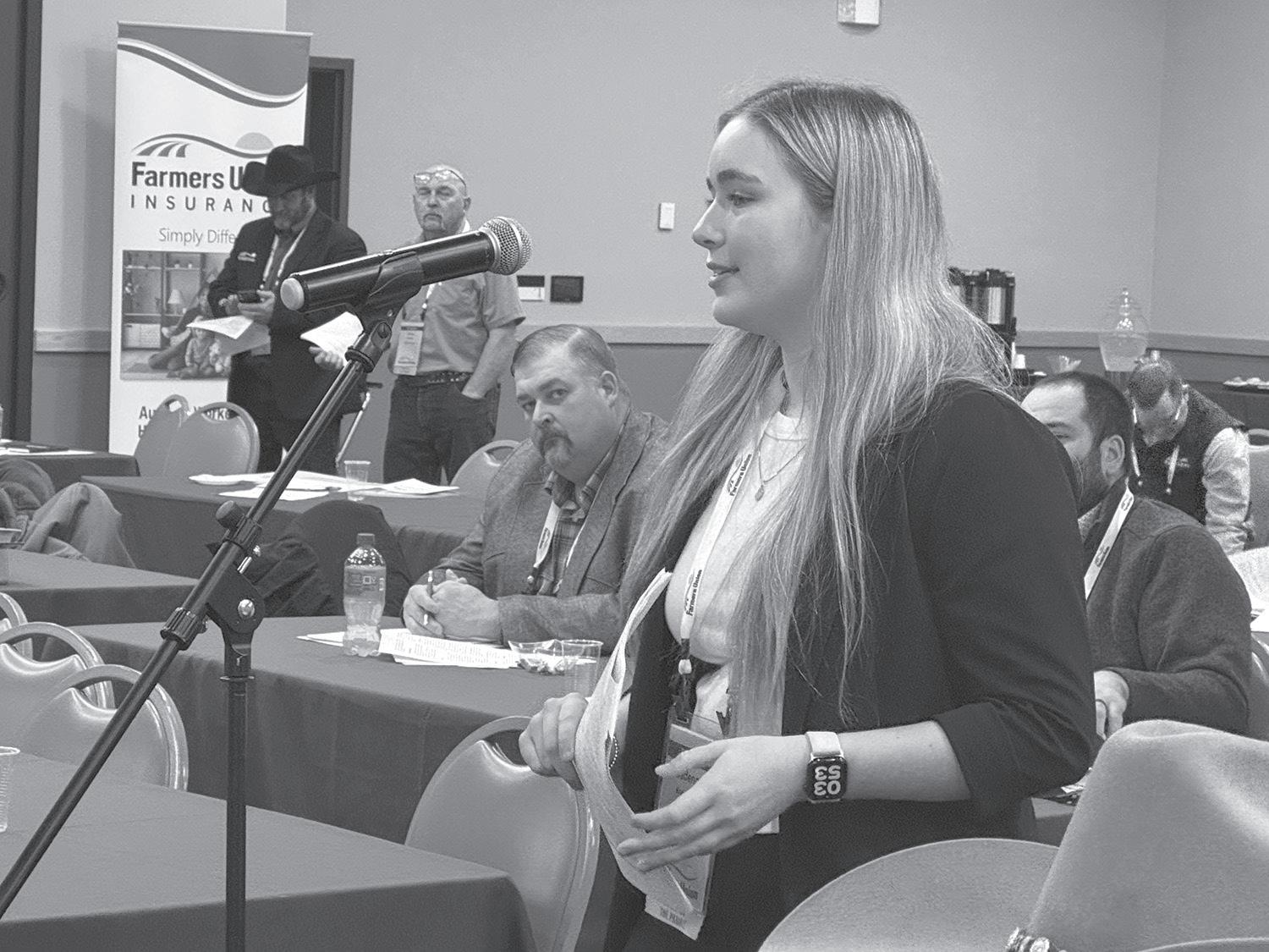 Senior Advisory Council member and Kimball cattle producer Cadence Konechne speaks during State Policy.