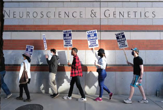 and Teachers Assistant on strike at UCLA. “With teaching, my own coursework, and my research, there isn’t really any time to pick up another job. This has resulted in me taking out loans just to live and eat here. This shouldn’t be the case. With the amount of work the university gets out of its grad uate students, postdocs, and oth ers, a living wage is a small ask… A number one ranked public uni versity should be doing no less and certainly much, much more.”