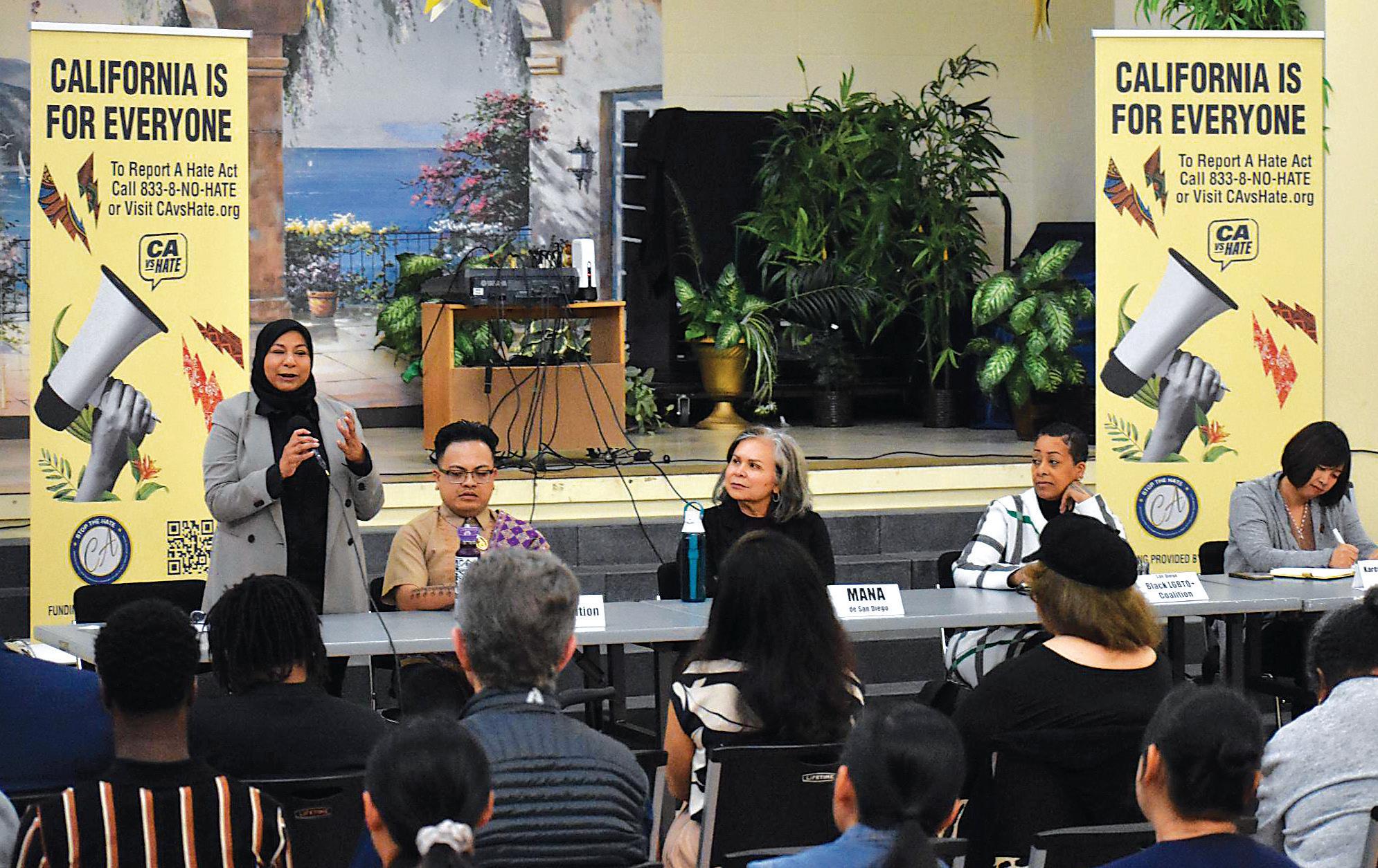 tory. The report accounts for the national total, but the local numbers are equally as stunning. Last Thursday’s “Hate & Our Communities of Color” Town Hall featured representatives from different organizations around the community. L to R: Tazheen Nizam of the Council on American Islamic Relations, Joseph Ruanto-Ramirez of the API Coalition, Inez Gonzalez-Perezchica of MANA, Angelle Maua of San Diego Black Pride, and Nao Kabashima of the Karen Organization. Not pictured: representatives of the Somali-Bantu Association of America. PHOTO: Macy Meinhardt/Voice & Viewpoint Stakeholders Discuss Reparations for Black Californians as State Faces Deep Budget Cuts Invisible Hate: Anti-Muslim Hate Incidents Going Unreported By Macy Meinhardt VOICE & VIEWPOINT STAFF WRITER Team Hoover at Hoover High School has been busy in the last few weeks. Back in February, the group of eight students were challenged to create a community focused campaign that helps their peers navigate their mental health journey. The task comes from the nationwide conference known as “The Aspen Challenge.” See HOOVER page 9 A mindful solution on teen mental health, created by students, for students Free Wi-Fi, Among Other Equity Programs, Risks City Cuts Mayor Todd Gloria announces 2025 reduction to free Wi-Fi programs SEE PAGE 7 Voice & Viewpoint Town Hall Breaks Ground On Uniting Communities Of Color 2021 ad and info chart uploaded by the Linda Vista Public Library advertising the SD 4 All Program. PHOTO: Linda Vista Library Shown from left to right are Policy Pathways to Reparations moderator John Kim, left, a member of the Budget Center Board of Directors and President and CEO of Catalyst California; panelist James Woodson, center, from the California Black Power Network and African Americans and the Alliance for Reparations, Reconciliation, and Truth (ARRT); and panelist Felicia Jones, the Director of Programs and Operations for Social Good Solutions and The Black Equity Collective. PHOTO: Antonio Ray Harvey/ CBM Anti-Islamic hate is on the rise in San Diego and across the country. With a 300 percent increase in incidents reported to CAIR, only a fraction of them are reported to the police. PHOTO: RDNE Stock Project/Pexels Team Hoover Tackles Teen Mental Health Crisis See HATE page 2 INSIDE THIS WEEK'S ISSUE: THE POWER OF POETRY SEE PAGE 7 EARTH DAY AT WORLDBEAT CENTER SEE PAGE 8 TODAY IN BLACK HISTORY SEE PAGE 16 Team Hoover at the Kickoff. L-R: Nhan, Khanh, Damian, Kally, Ann, Chris, & Anthony. PHOTO: The Aspen Challenge