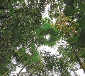 Crowded treetops that control light and moisture reaching the layers below