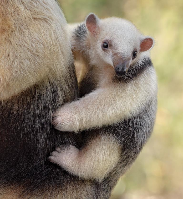 First-time mother Cora the southern tamandua (pronounced tuh MAN deh wah) gave birth last summer to a healthy male pup. The pair, along with Cora’s mate Fernando, live at the San Diego Zoo Safari Park and are wildlife ambassadors for their species. Tamanduas, native to Central and South America, are also called lesser anteaters. Photographed by Ken Bohn, SDZWA photographer.