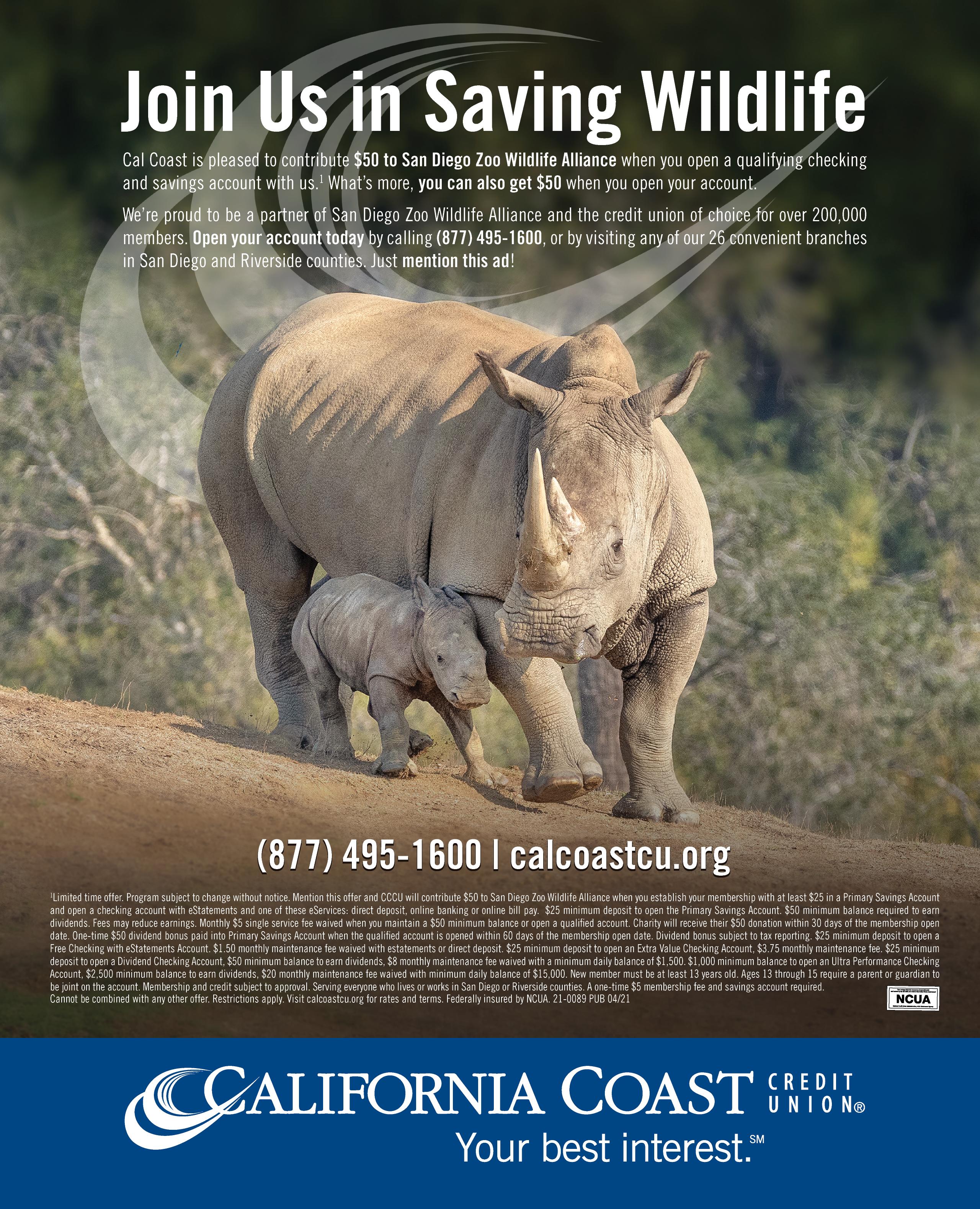 The printed San Diego Zoo Wildlife Alliance Journal (ISSN 2767-7680) (Vol. 1, No. 5) is published bimonthly, in January, March, May, July, September, and November. Publisher is San Diego Zoo Wildlife Alliance, located at 2920 Zoo Drive, San Diego, CA 92101-1646. Periodicals postage paid at San Diego, California, USA, and at additional mailing offices. POSTMASTER: Send address changes to San Diego Zoo Wildlife Alliance, P.O. Box 120271, San Diego, CA 92112-0271.
