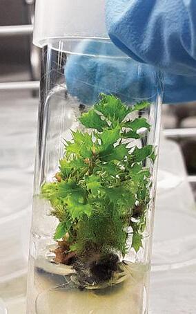 Nuttall’s scrub oak Quercus dumosa , a native California tree that plays important ecological roles, is endangered and increasingly threatened by urban expansion, climate change, and wildfires. To establish assurance populations of these trees, SDZWA scientist Joseph Ree, Ph.D., and our Plant Conservation team have developed a protocol for cultivating oak tissue in the laboratory. The protocol involves taking a small amount of stem tissue from a wild tree and placing it on a sterile mix of nutrients that the tree requires for growth. Growing oak tissue in these conditions removes the need for an intermediate greenhouse step, saving considerable time, effort, and resources. In a promising development, the protocol has so far proven suitable for cultivation of Nuttall’s scrub oak and two other local oak species.
