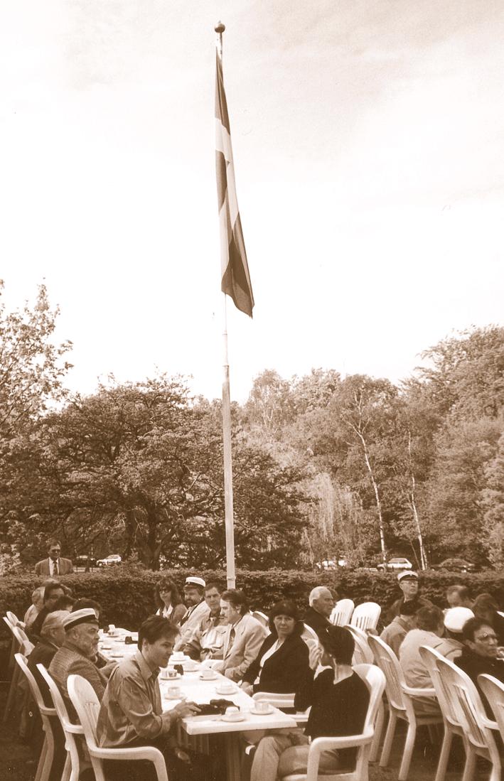 Vi började som vanligt kl. 9.00 då flaggan gick i topp. TBV-kören underhöll oss sedan med sina sköna vårsånger alltmedan kaffet avnjöts. Vädret var vänligt emot oss, och solen tittade fram emellanåt. Många bar sina vita (gula) examensmössor med glädje, och även de övriga njöt av stunden.