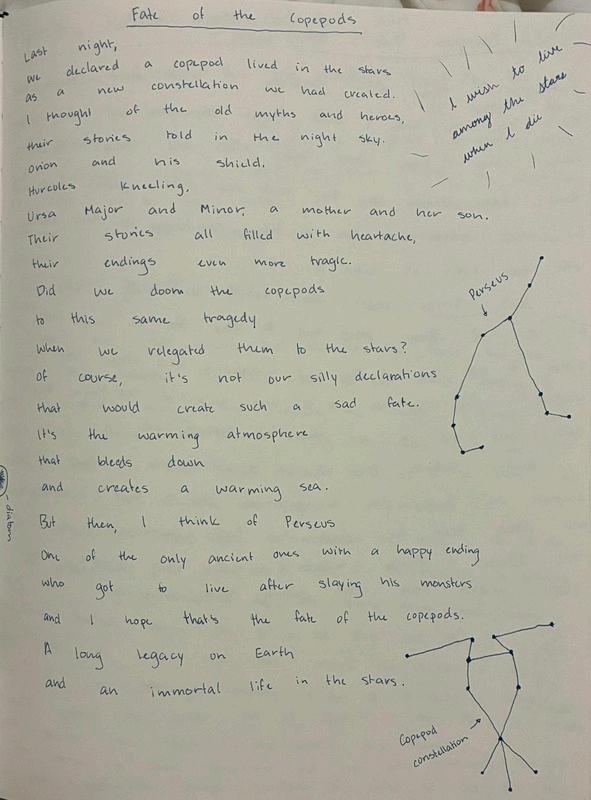 It is my sincere hope and belief that, through this issue of SEA Writer, we have managed to weave our story into a larger picture.The beauty of SEA Writer is that it is full of stories, art, and projects made for other purposes throughout the semester. Our life on board the Robert C. Seamans felt so far at times from the long nights spent perfecting our policy briefs in Woods Hole, but here they are both integral to our learning and growth. These once separate pieces have been assembled to create a wonderful collage of our time together and all that we have learned and experienced.
