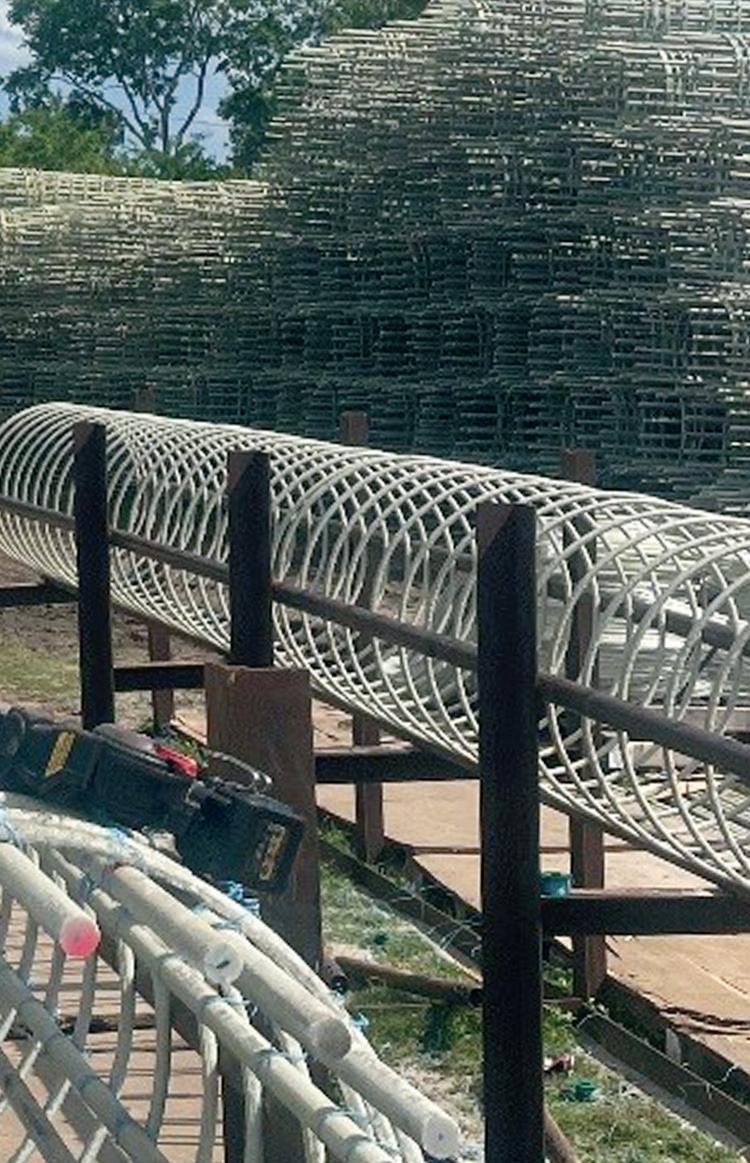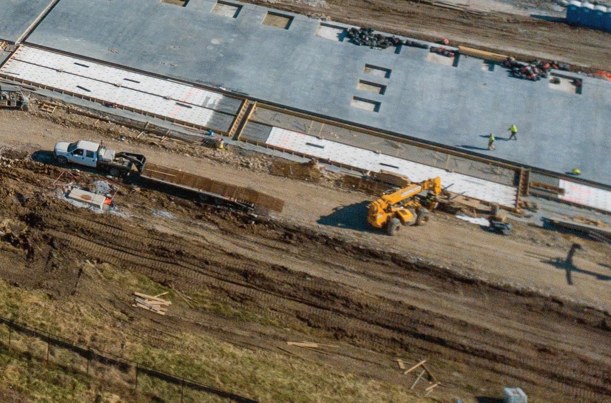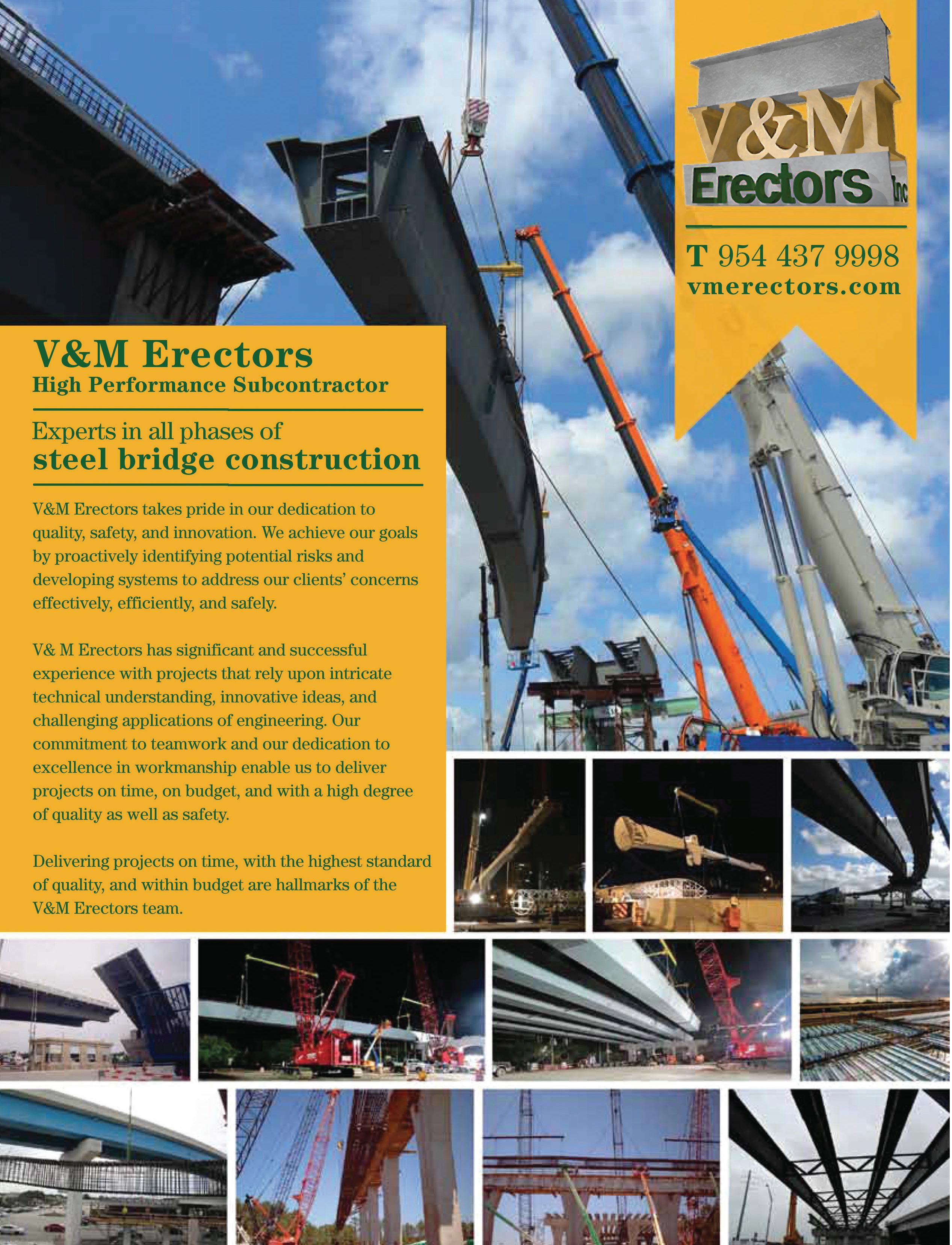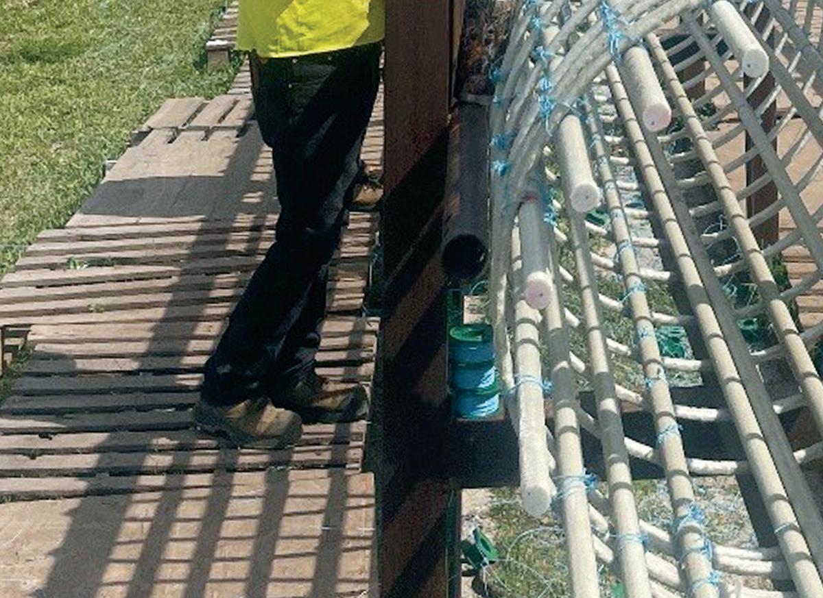 On the Cover: Shelby Erectors served as the Glass Fiber Reinforced Polymer (GFRP) reinforcement installer for the Florida Department of Transportation’s A1A Secant Wall Project in Flagler Beach, Florida. To meet the production schedule, Shelby Erectors developed a custom rebar rack system. Here, rodbusters tie GFRP cages in the rebar racks with about 300 completed cages stacked in the background.