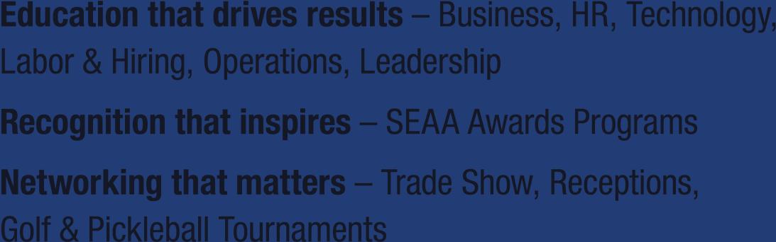 Ready to take an even bigger step to maximize your company’s visibility? Our publishing partner offers a hybrid mix of print and digital advertising options—email newsletters, website, and even sponsored email blasts, reserved just for members. Want to see a custom marketing plan? Contact Chris Harrison at chris.harrison@seaa.net.