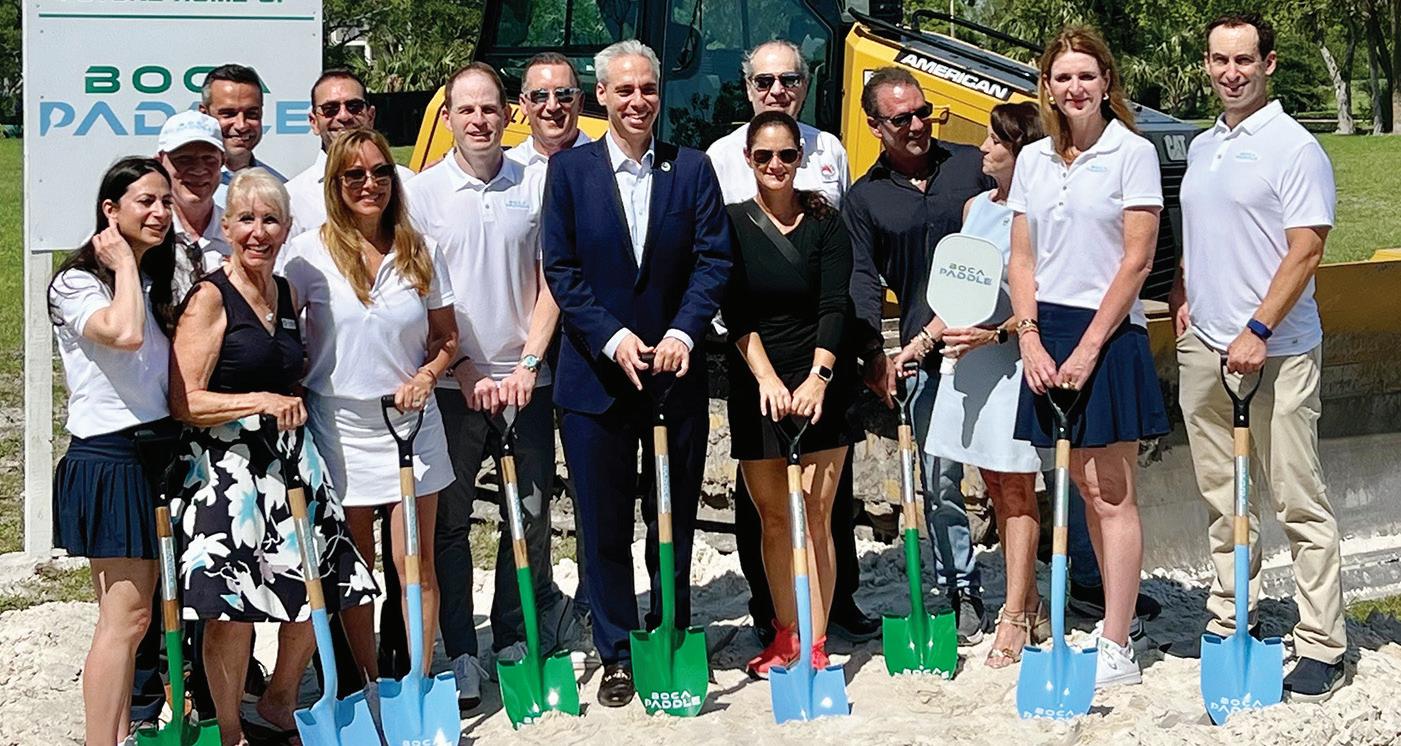On June 10th a groundbreaking ceremony took place as part of an announcement that a 100,000-square-foot facility is being built for “Boca Paddle,” a combined indoor climate-controlled and covered outdoor venue that will offer 25 world-class paddle courts available on a modest fee basis: 19 for Pickleball and 6 for Padel, a variation of the sport that is popular in South America and played by many in Florida.