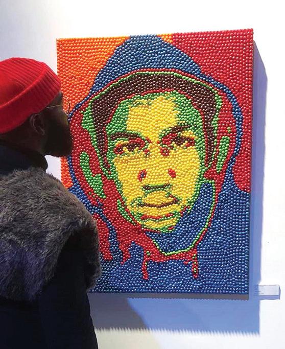 • Harold Caudio –Haitian American, South Florida mixed-media artist who creates pieces that challenge stereotypes, celebrate diversity and spark dialogue. “Pop Culture” will feature Caudio’s series of portraits of influential figures (including Janet Jackson and Tupac) made entirely out of Skittles candy. Caudio was inspired to use Skittles after hearing the tragic story of Trayvon Martin, who was carrying a bag of Skittles and an iced tea when he was fatally shot. The Skittles became a symbol of Martin’s innocence and youth.